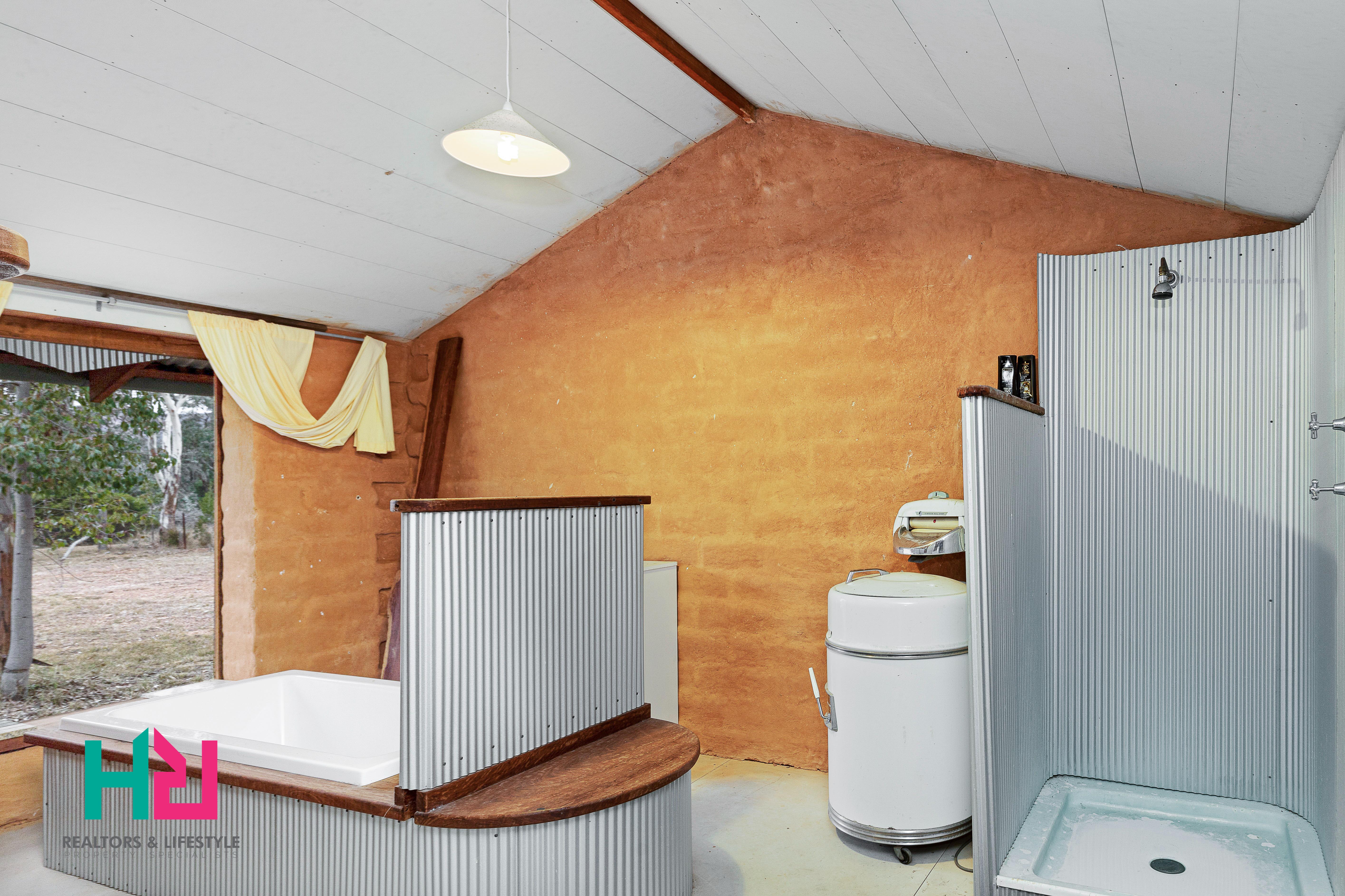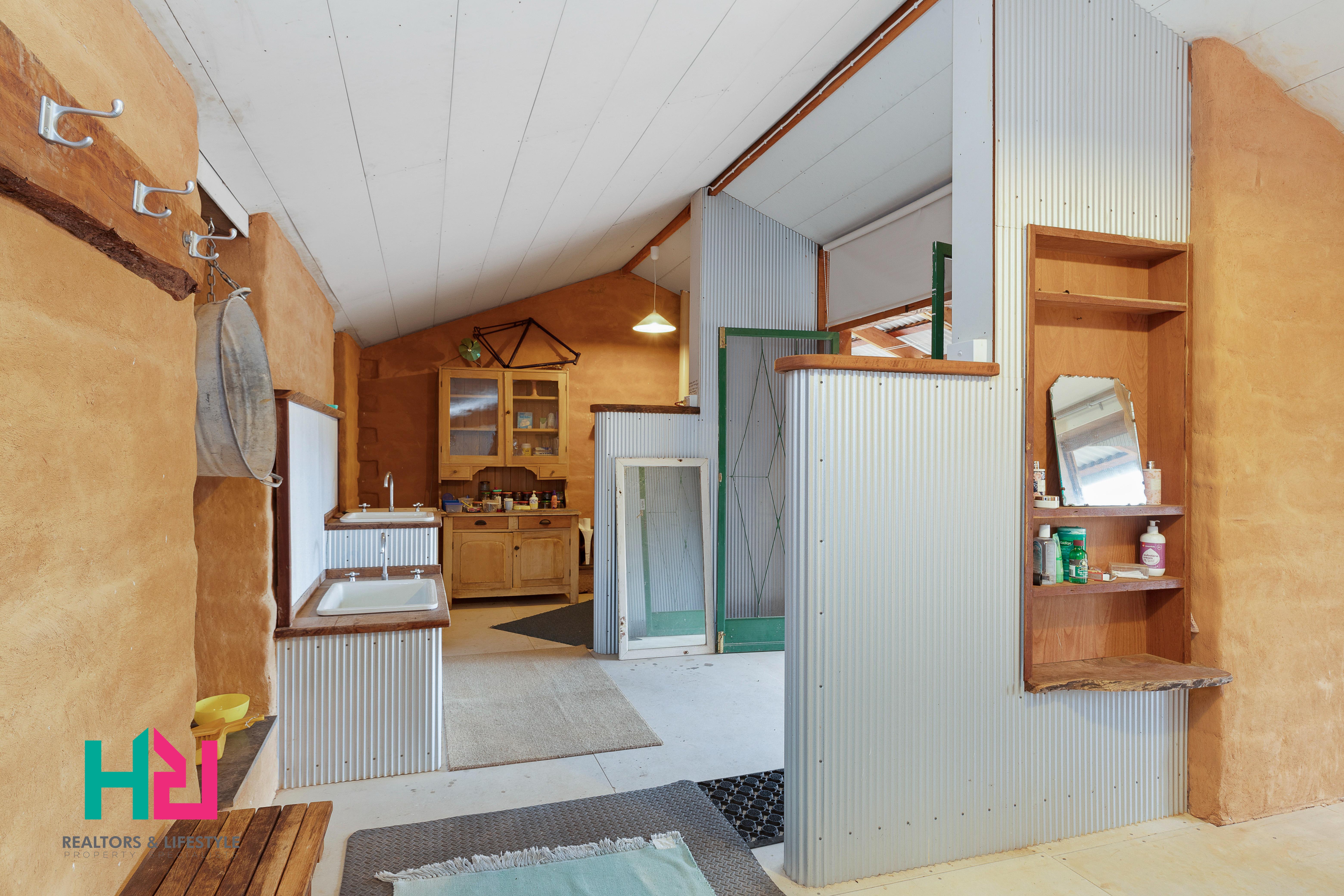 Incredible hand-crafted mud bricks blend intuitive technology with minimal footprint advantages. The external bathroom and laundry block share the fully fenced yard with the main house - all positioned at the front of the property. Each building presents angular, sleek spaces softened by natural and rustic building materials. The ultimate expression of sustainable living naturally includes a 3Kw solar power system wired for 240v appliances. Abundant water storage is plumbed via underground PVC to poly tanks totalling over 47,000 litres. Then, fed back via a pressure system.