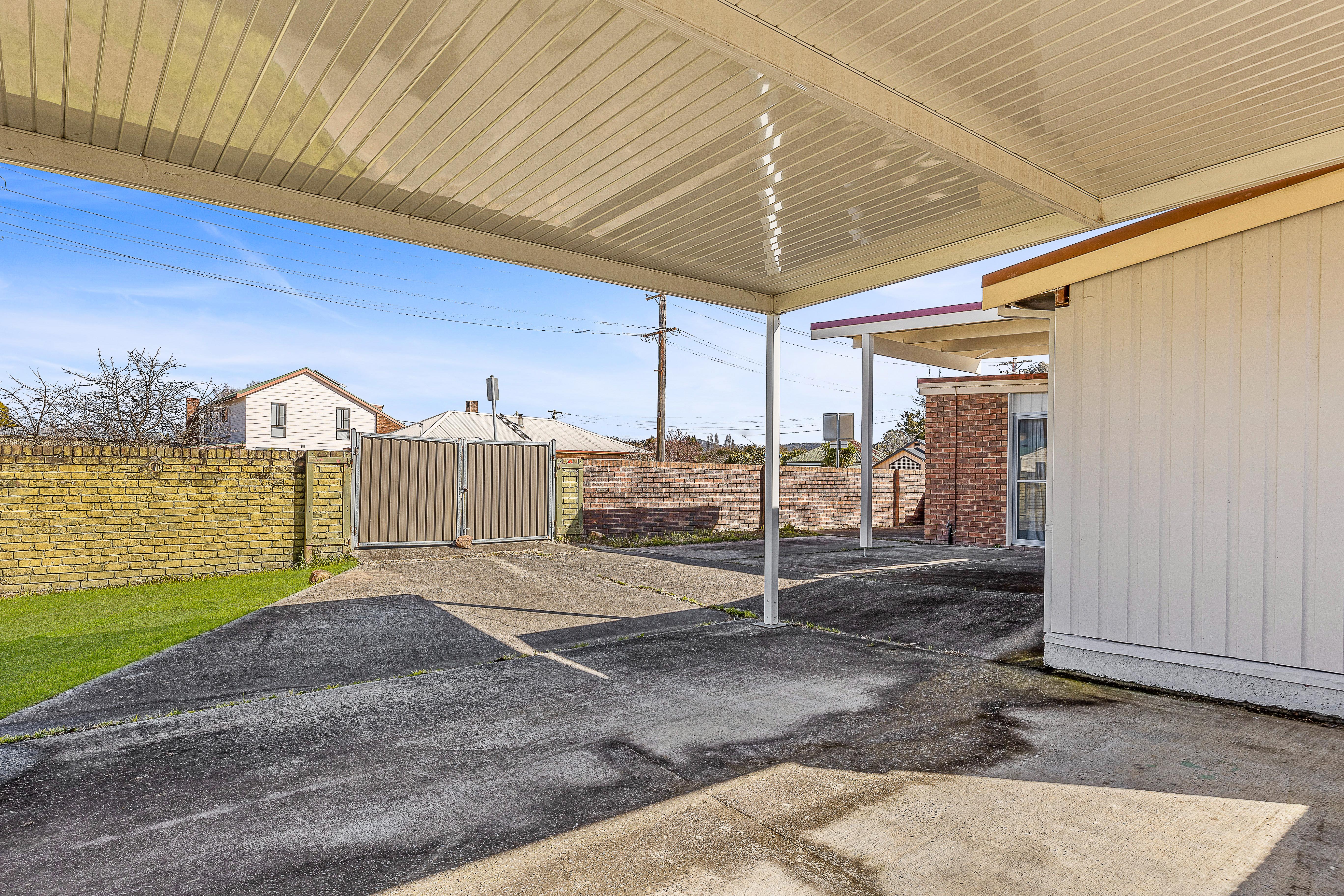 A lovely north-facing front yard and large rear fully fenced yard is essentially maintenance-free and has side street access to a double carport.