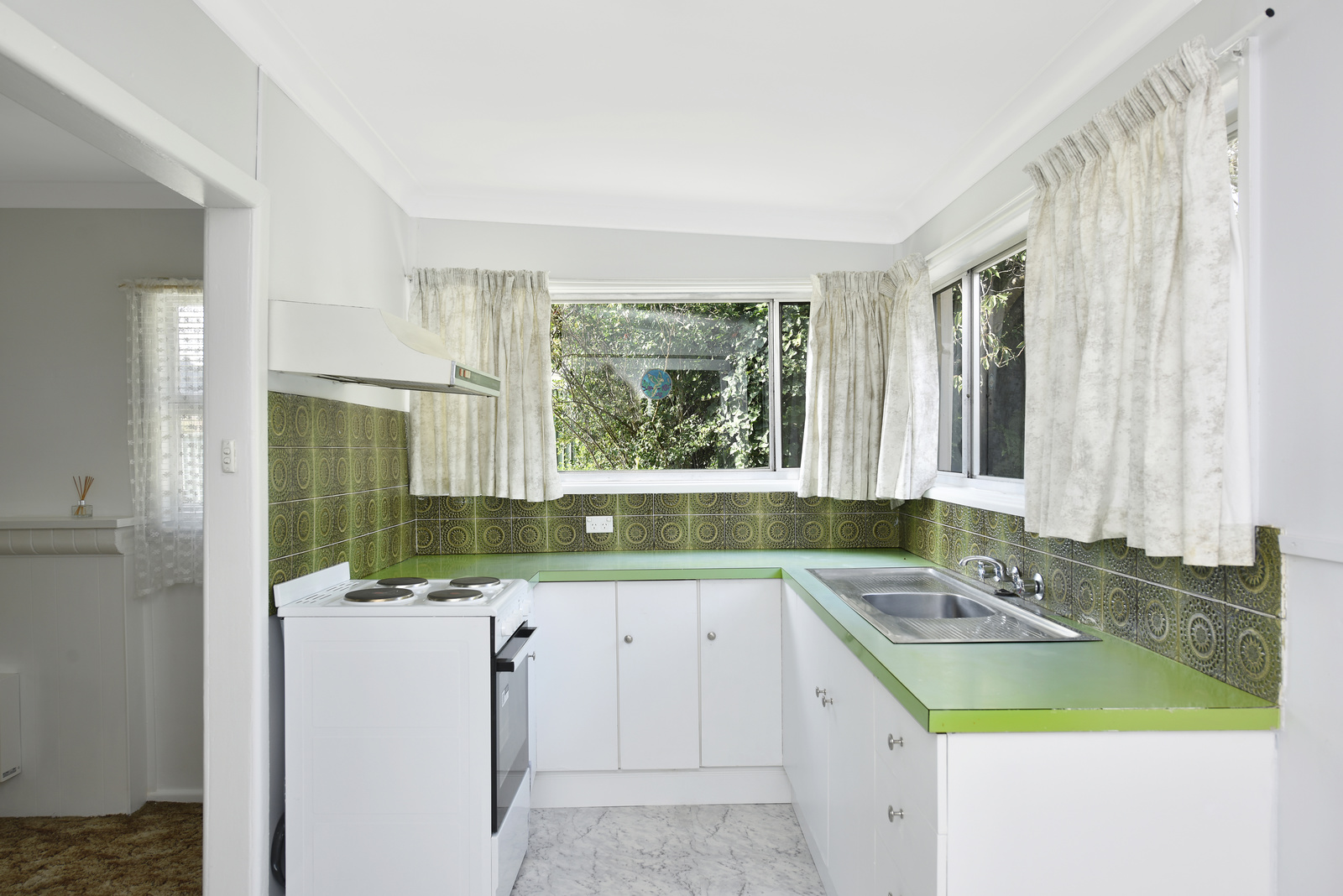 A rear sun room/dining, freshly painted throughout, modern open plan living areas with new electric and gas heating, 3 spacious carpeted bedrooms with high ceilings. The tidy kitchen has a new stove and both bathroom and kitchen have brand new floor coverings. The sun room is extraordinary cool in summer and warm in winter, just what you need in you relaxation space.