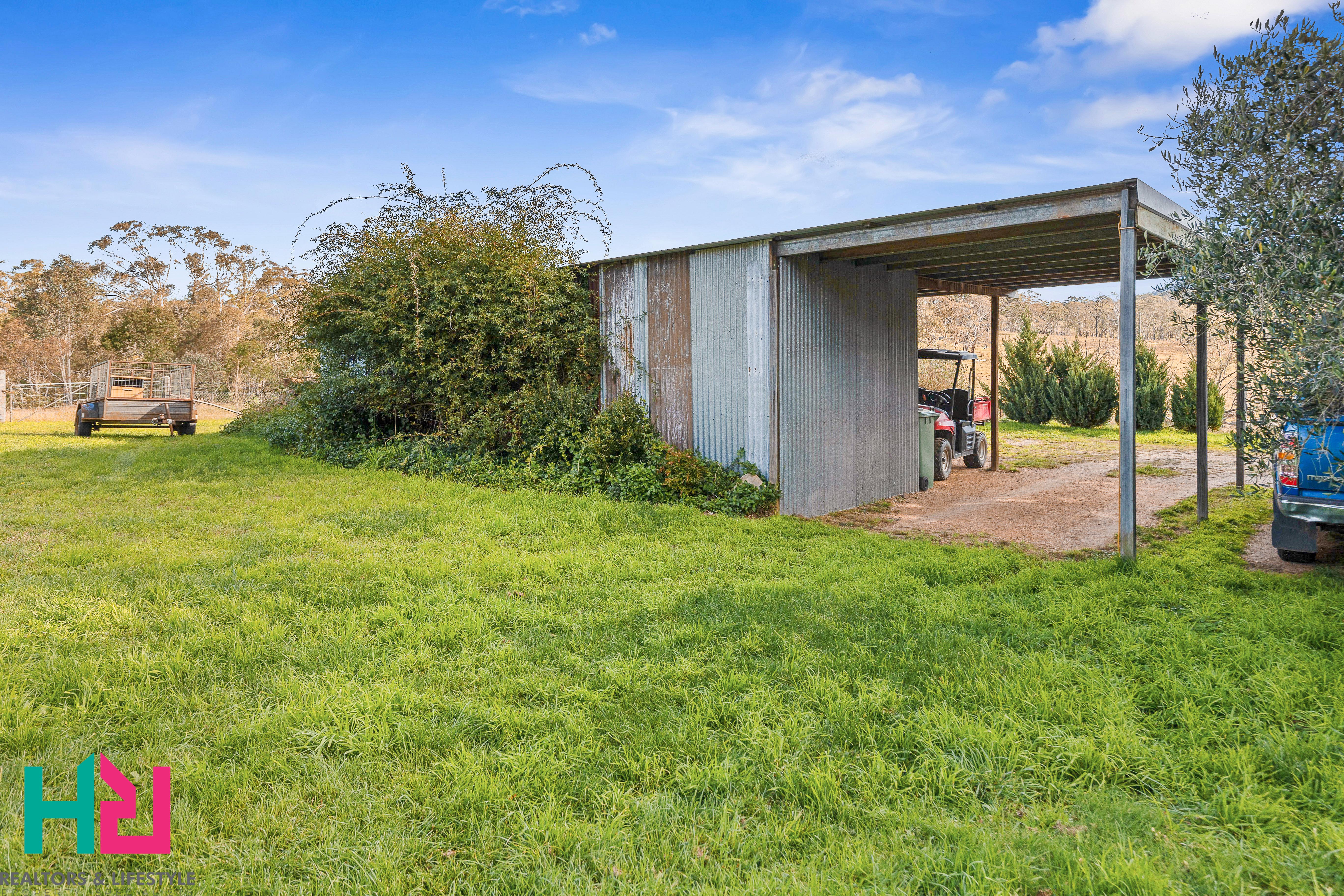 The spacious land around the house offers plenty of room for your four-legged friends to roam and graze. You can create your own private retreat. The property is equipped with a two bay machinery shed, horse shelter, and 6m x 9m shed with carport and timber storage room. Enjoy the peace and tranquillity of country living.