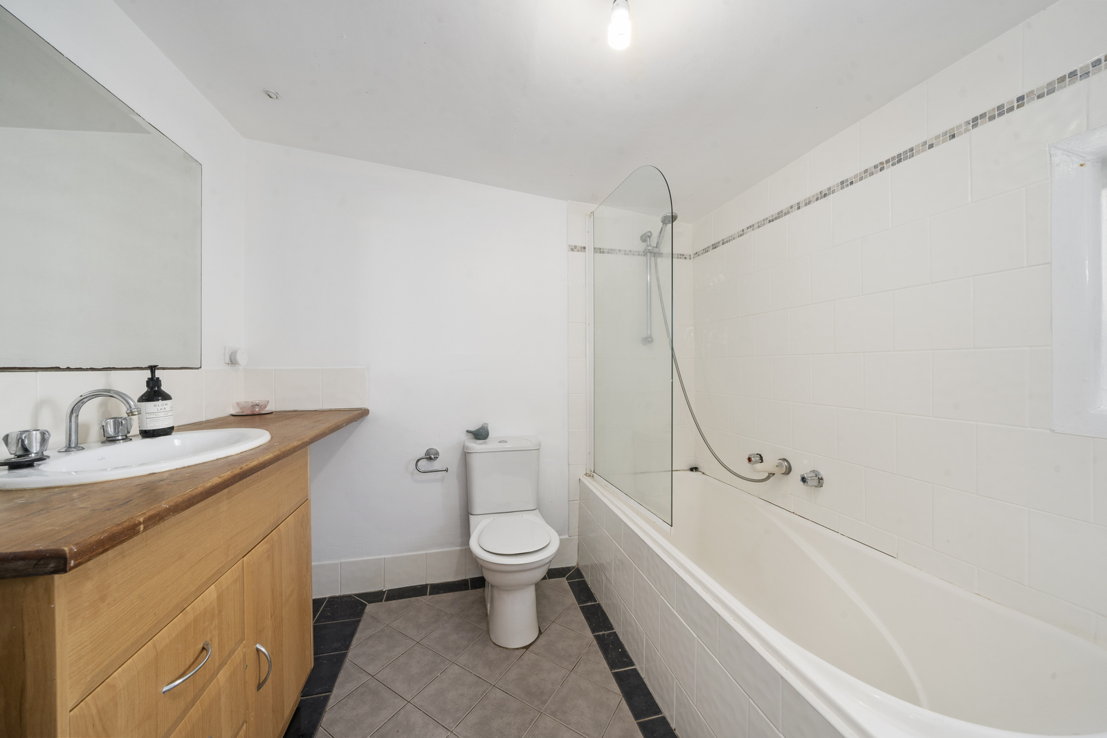 - Bathroom with shower over bath