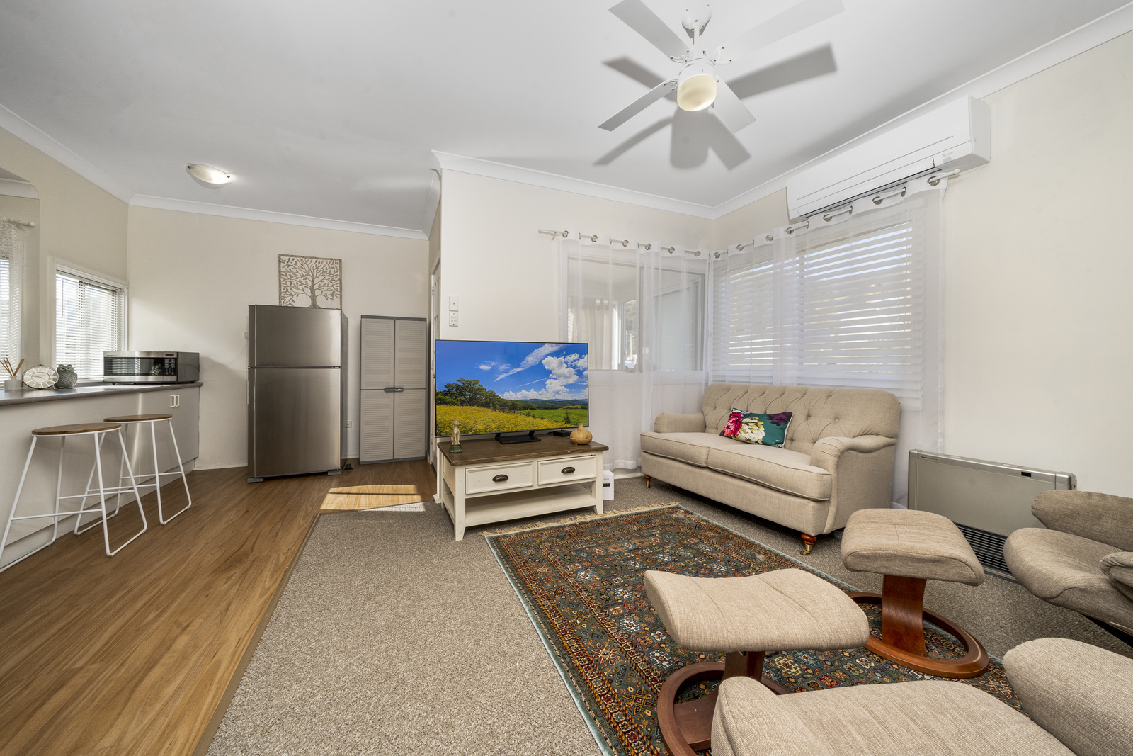 - Large comfortable lounge room with gas heating, reverse cycle air conditioner and loads of natural light
