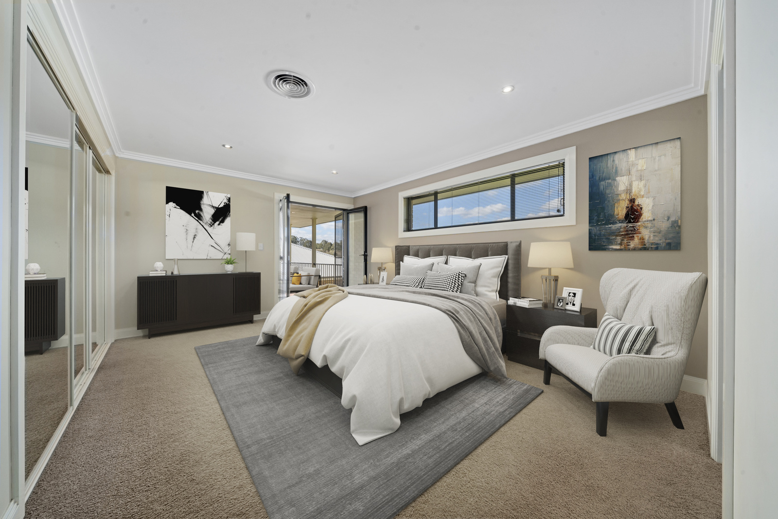 - Large master bedroom with private balcony,