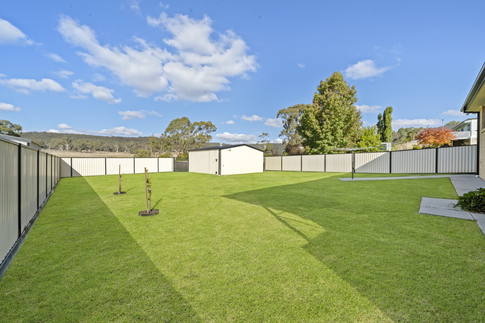 - Secure & private fully fenced rear yard with , easy care lawn