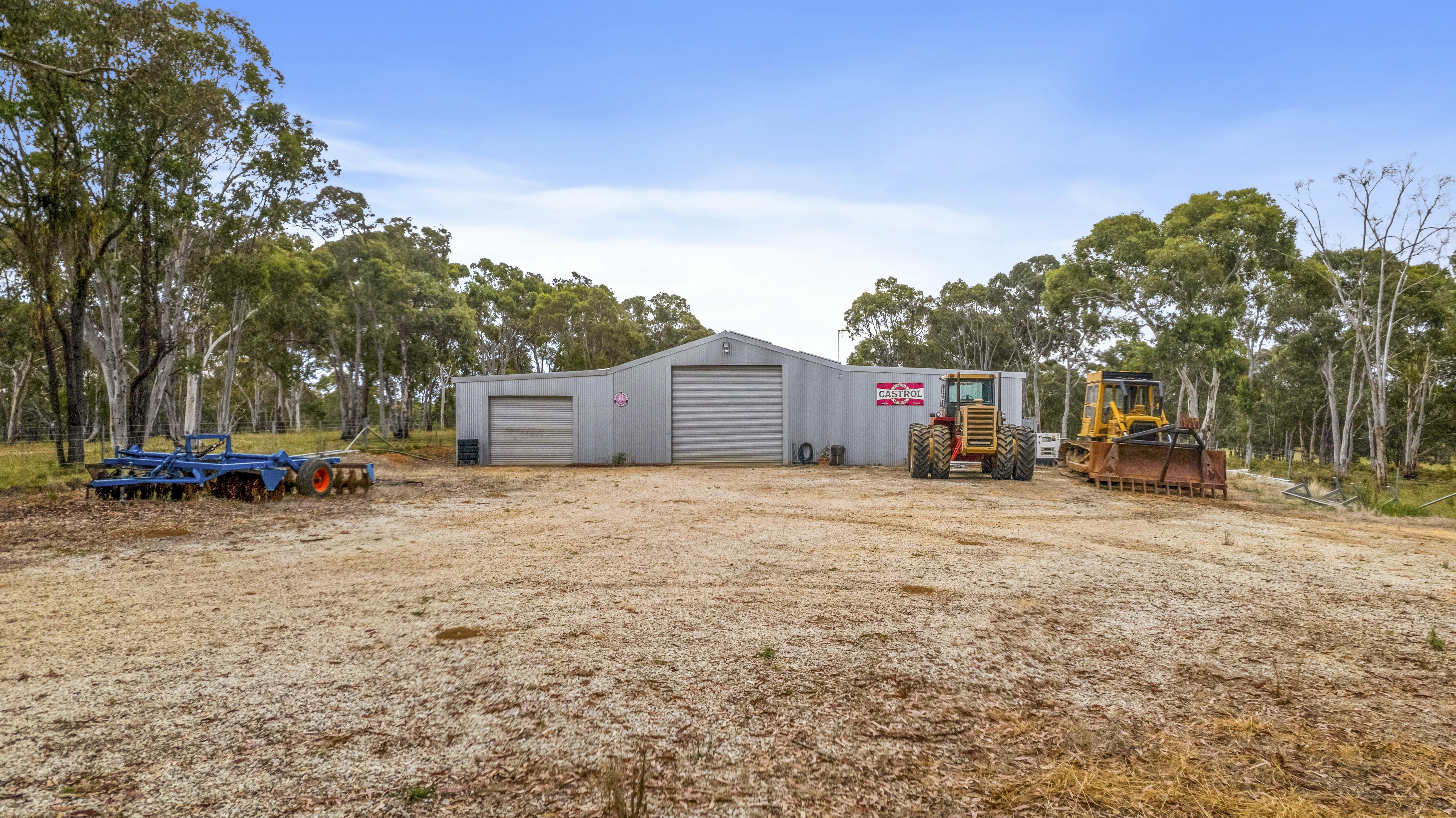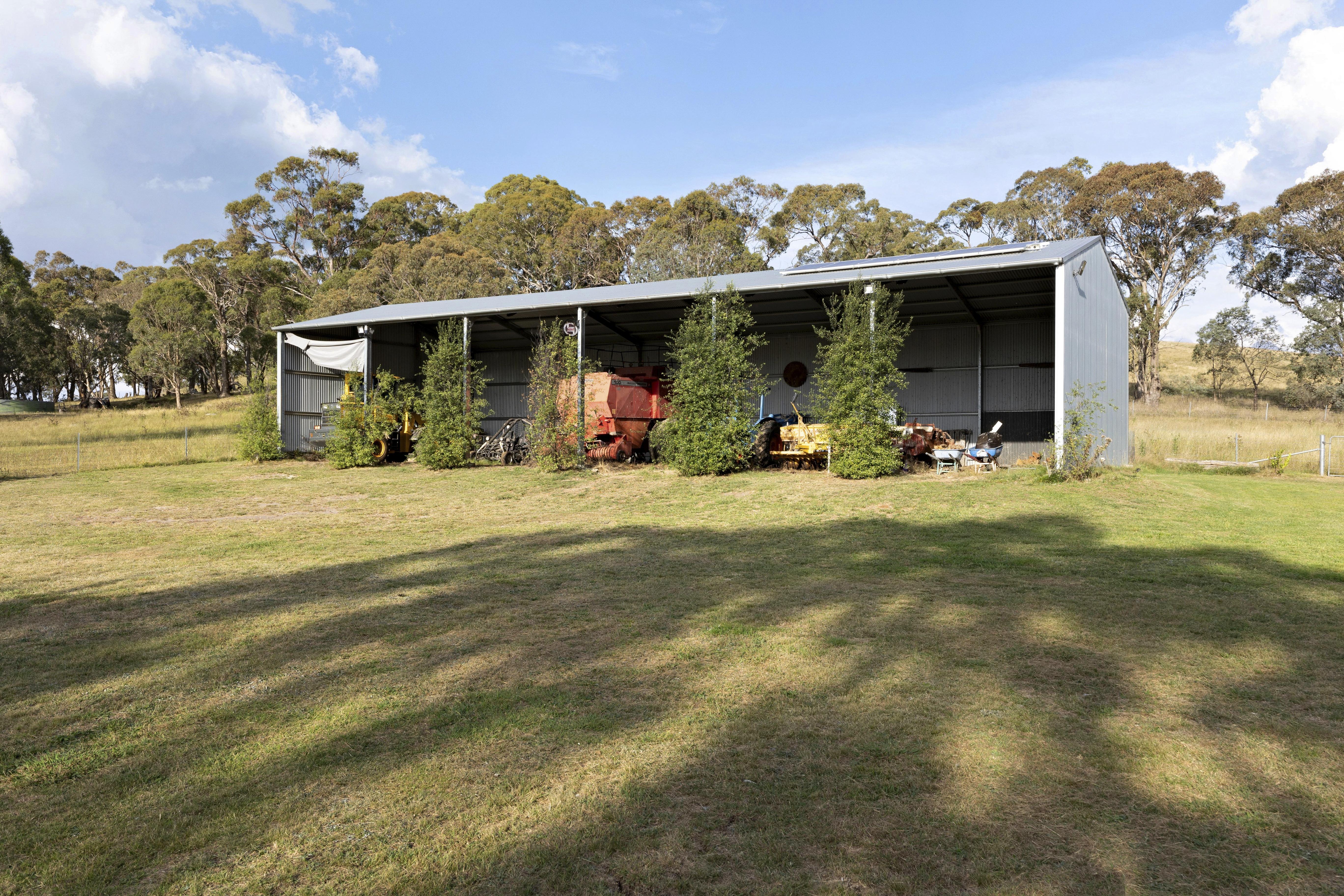 - The estate boasts an array of sheds destined to accommodate every need, including a colossal 21m x 18m enclosed workshop and a 24m x 9m open front machinery shed.