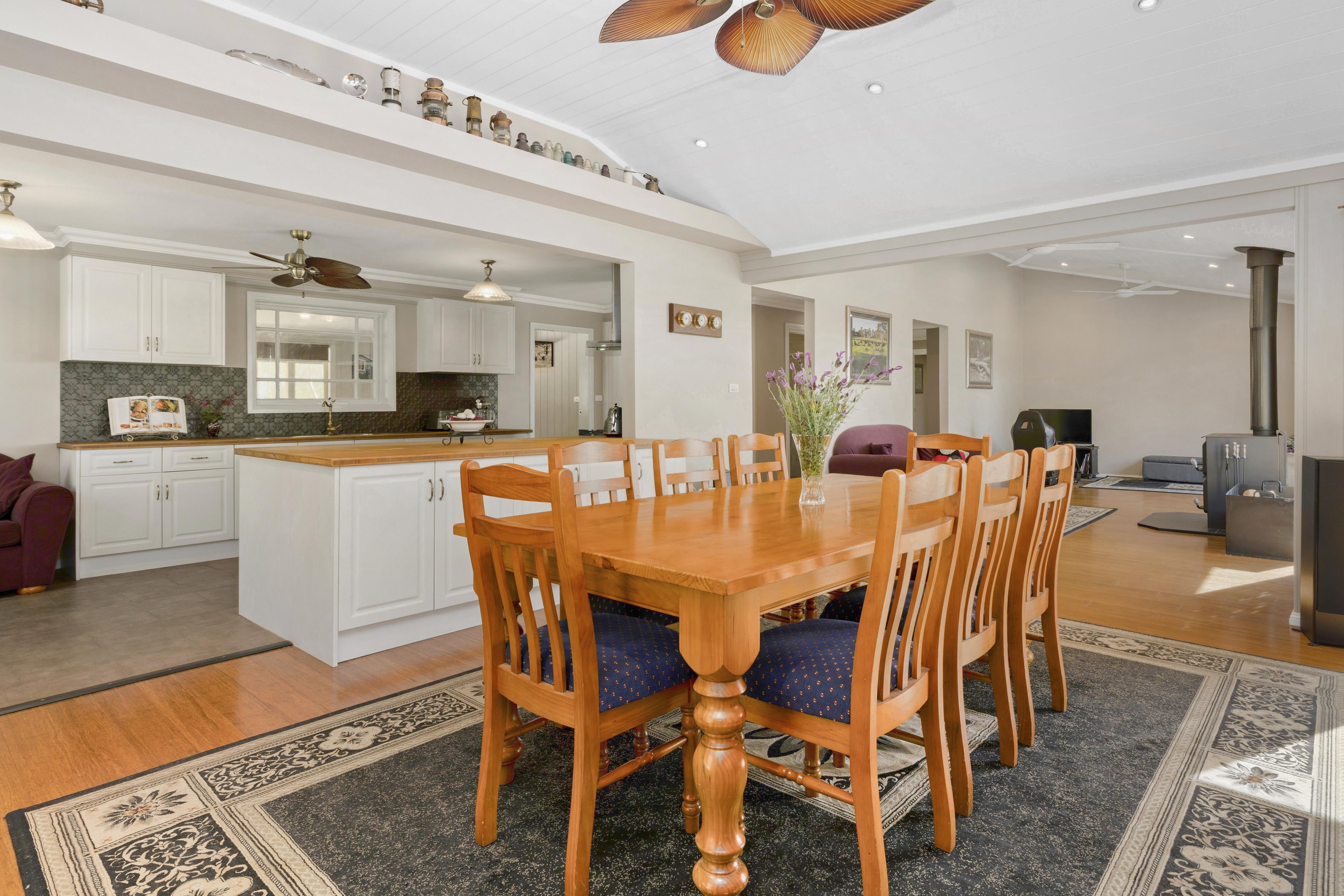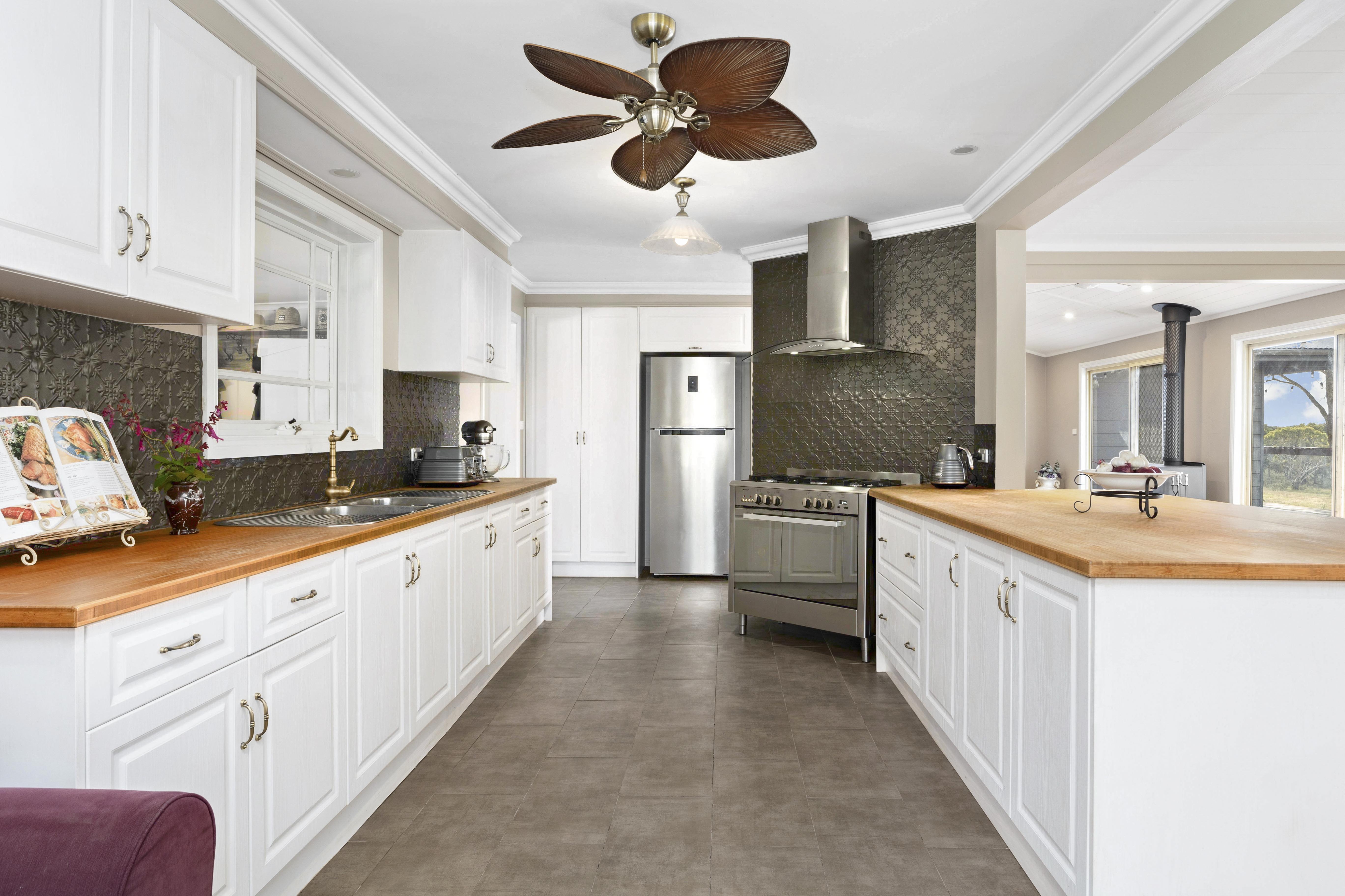 - A gourmet kitchen adorned with a 900mm freestanding gas oven offers a culinary haven with breathtaking countryside vistas.