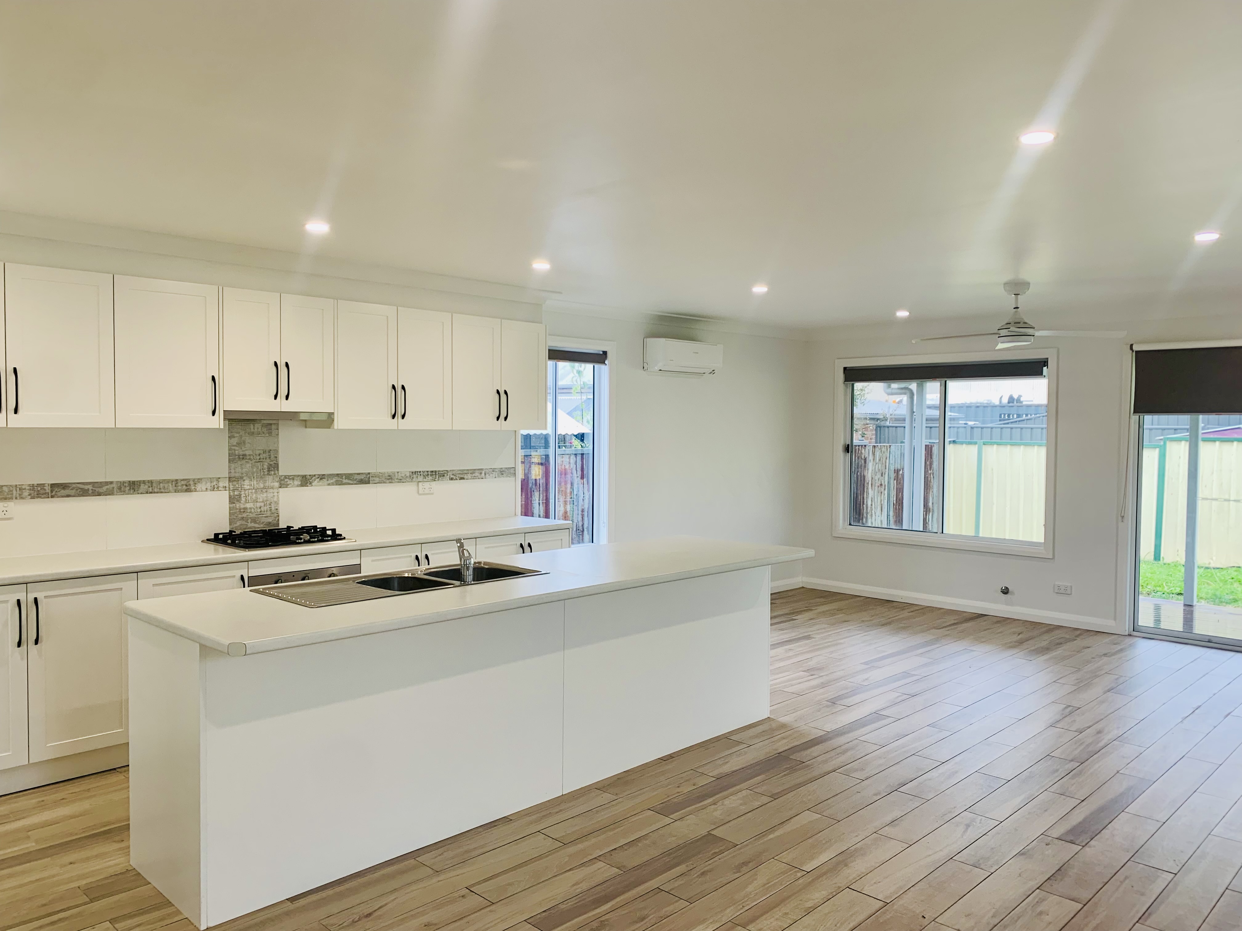 Open-plan kitchen living and dining at the lower level