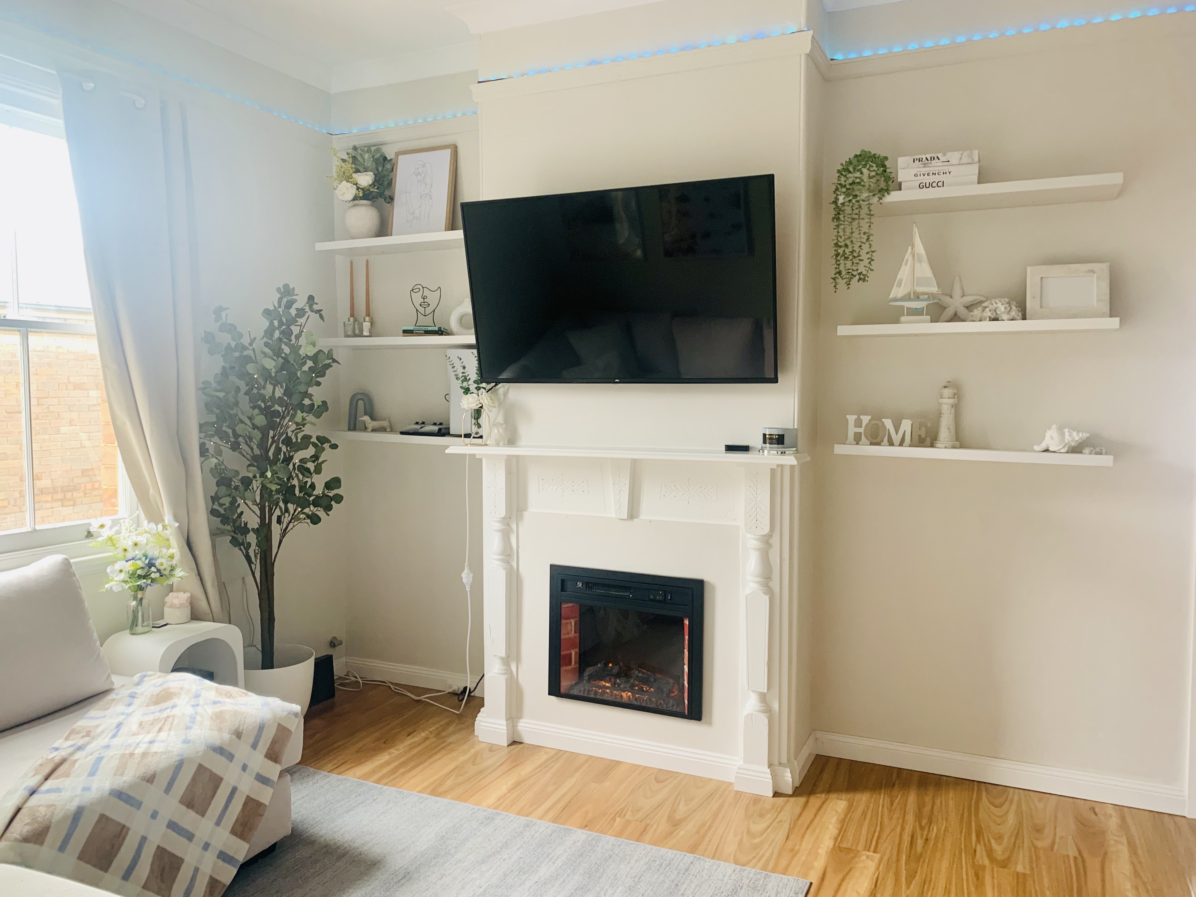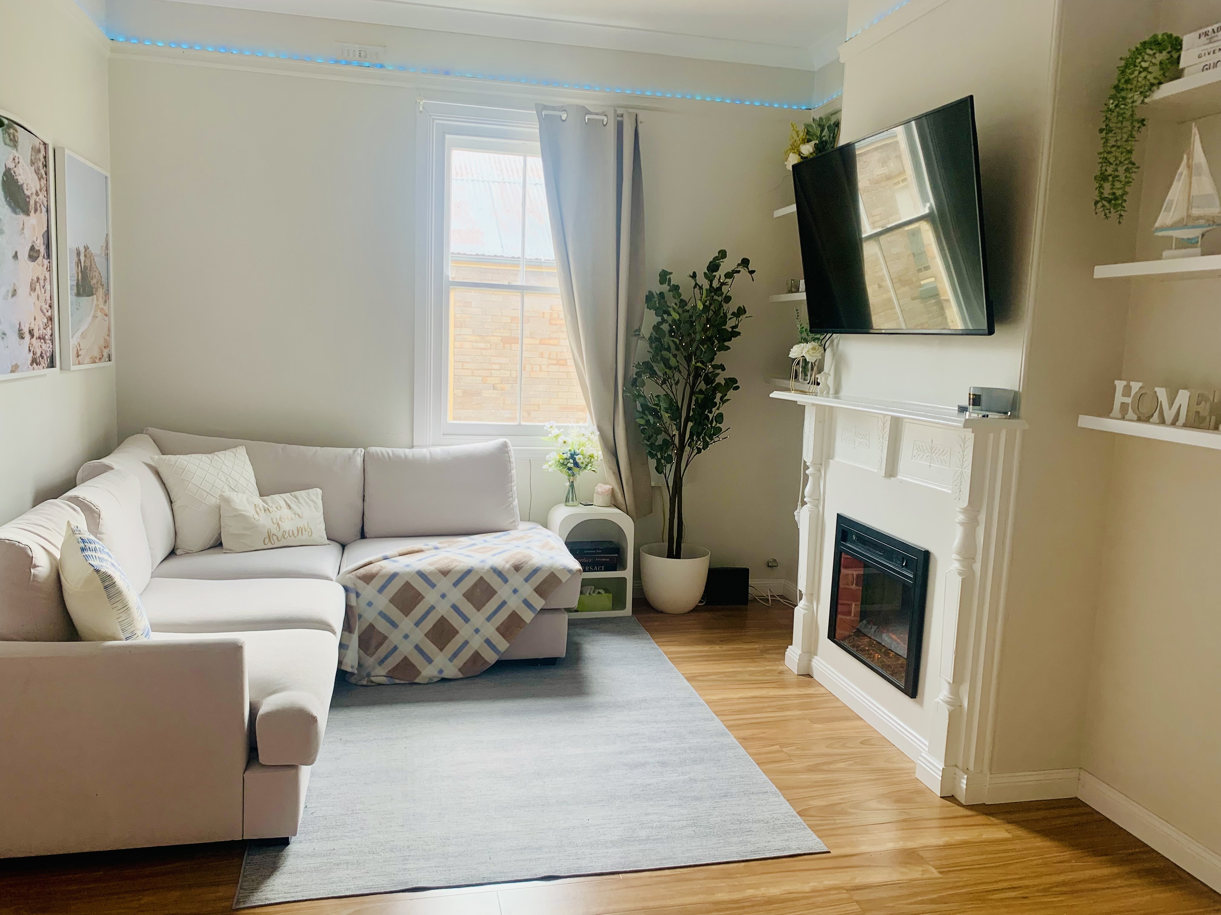 Cozy loungeroom with electric fireplace