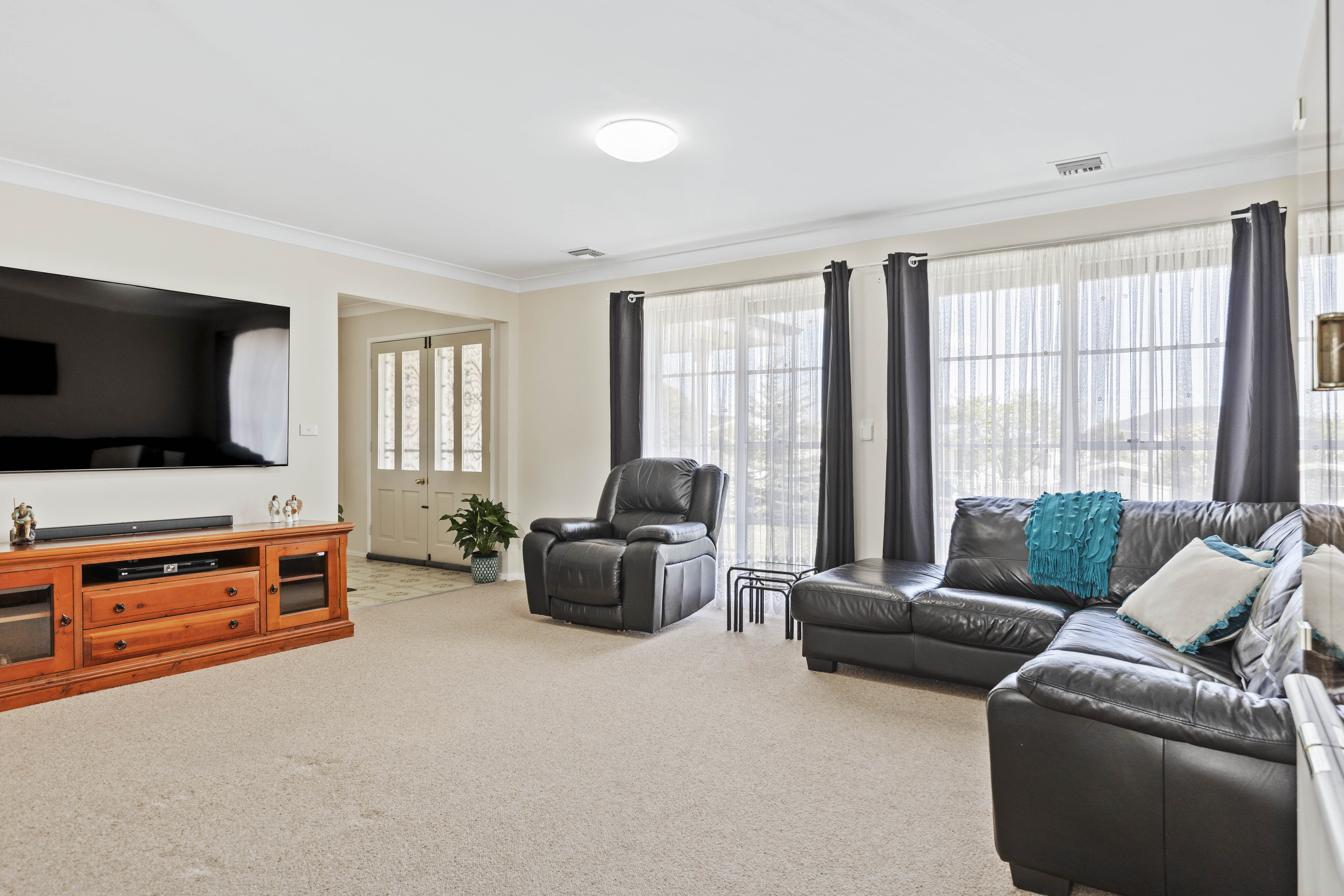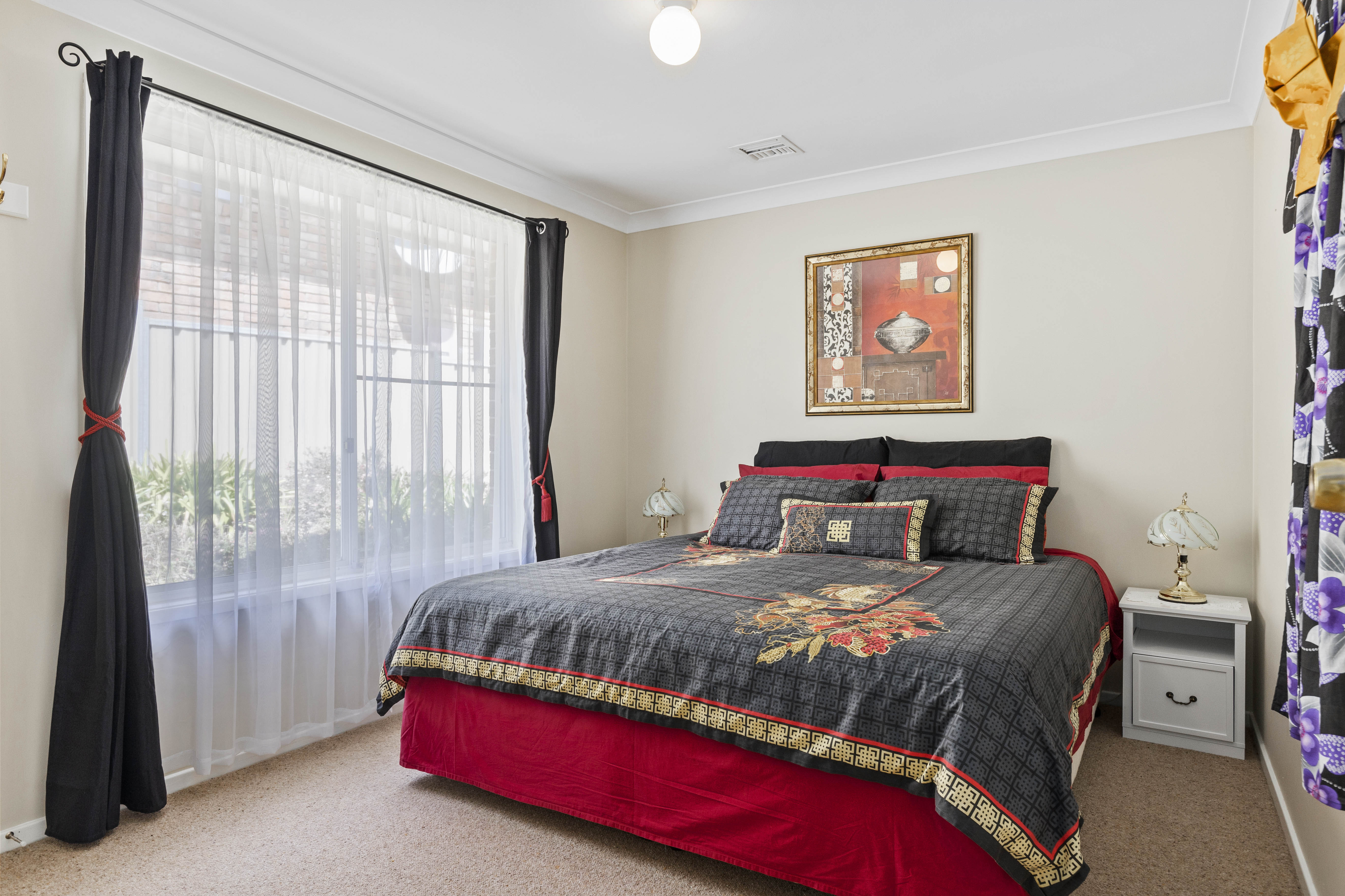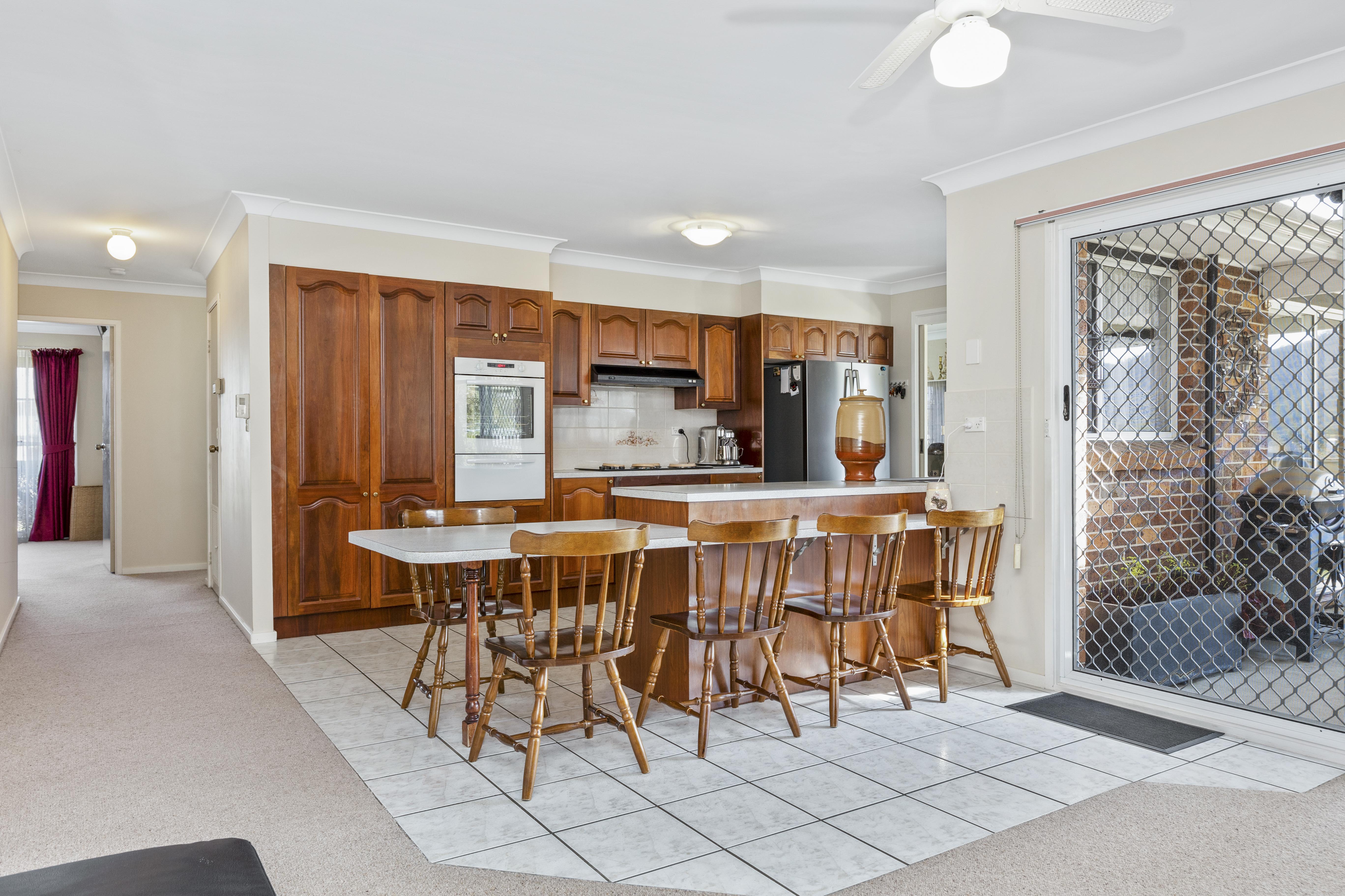 Step inside and be greeted by the light-filled open-plan living area, perfect for entertaining friends and family. The jarrah kitchen features ample storage space, and a breakfast bar for casual dining. The adjoining dining area seamlessly flows into the comfortable lounge, creating a versatile space for relaxation and socializing.