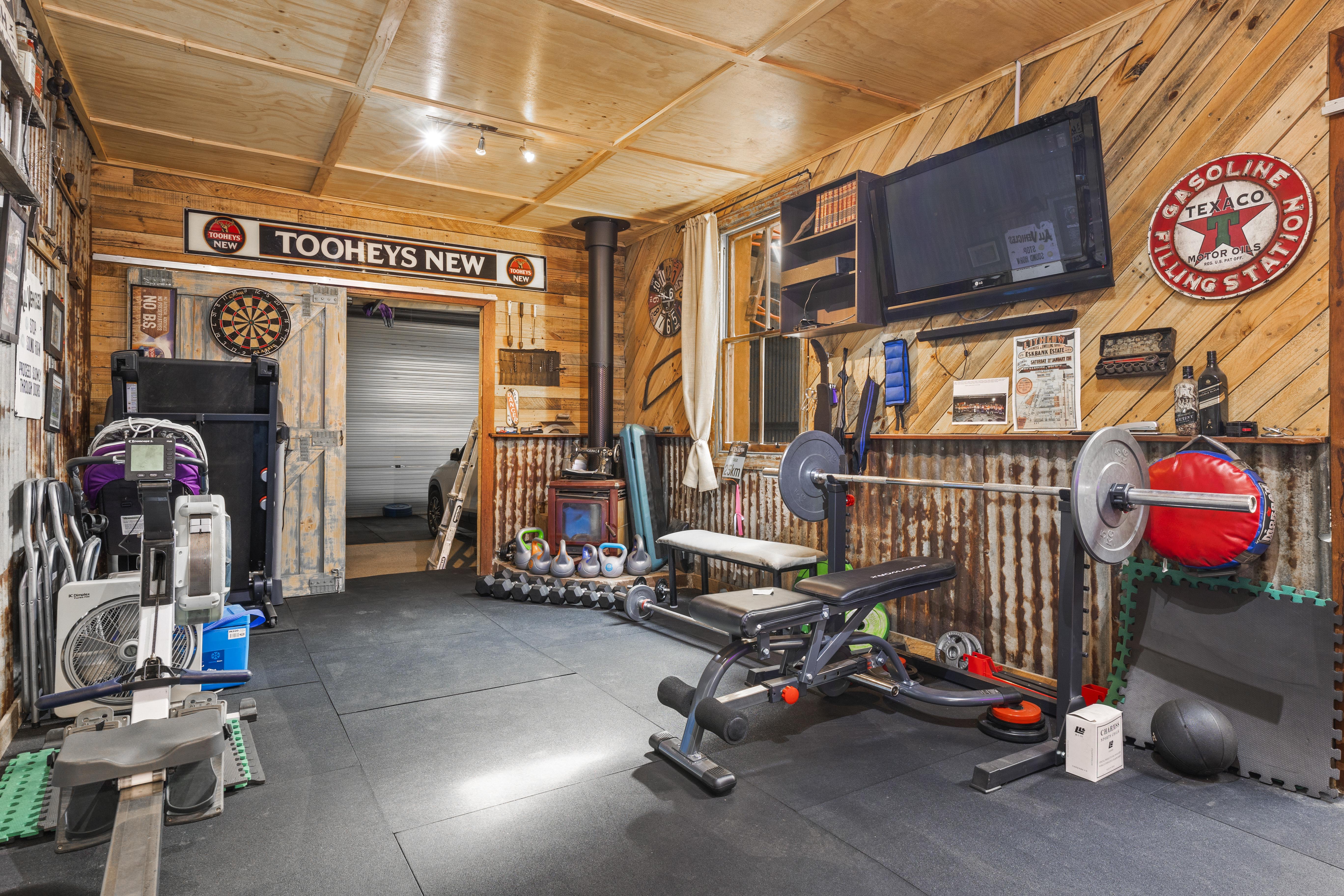 Man/She Shed: Fully equipped for use as a home gym, entertainment space, or additional workshop area.