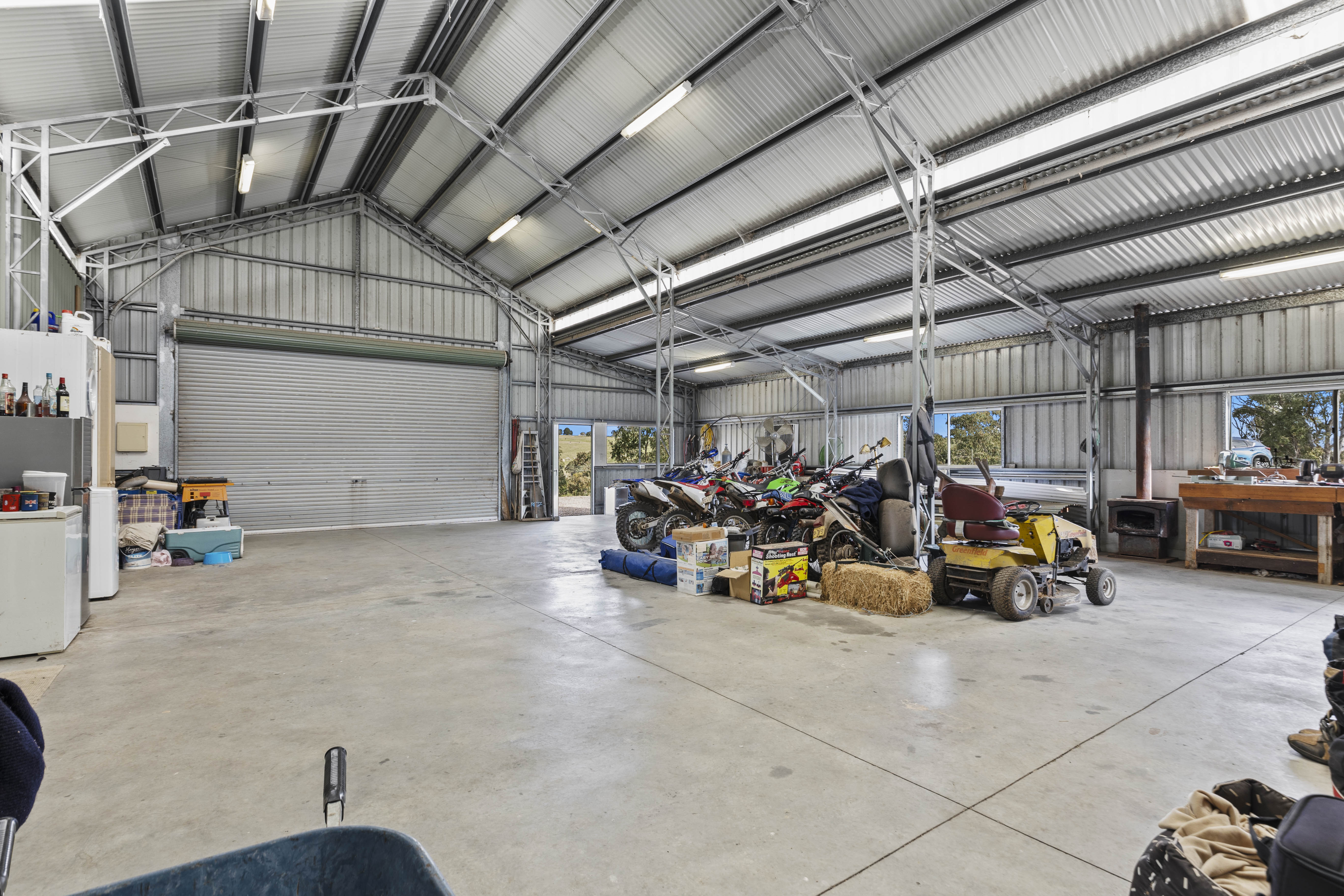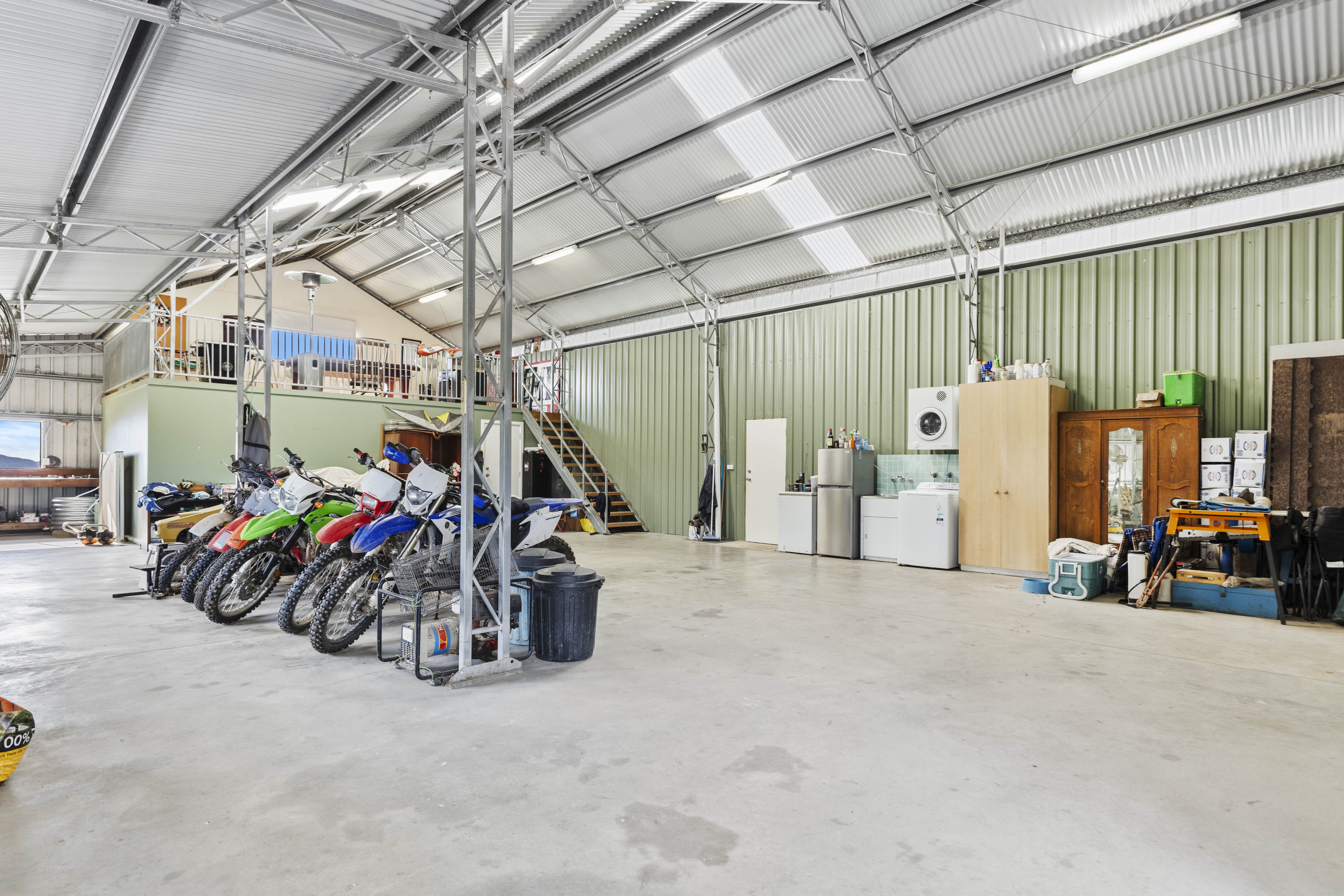 The impressive shed has a three-bedroom accommodation space housed within, designed for comfort and functionality, with TV aerial reception and mobile phone reception is all in working order. Featuring a galvanized steel truss frame with steel purlins and wall studs, this structure is built to last. Enjoy the benefits of double roof insulation & sarking and wall sarking & insulation ensuring cool summer days and warm winters' days, along with a 150 mm reinforced concrete slab that promises durability and safety. Everything is council approved for your peace of mind.