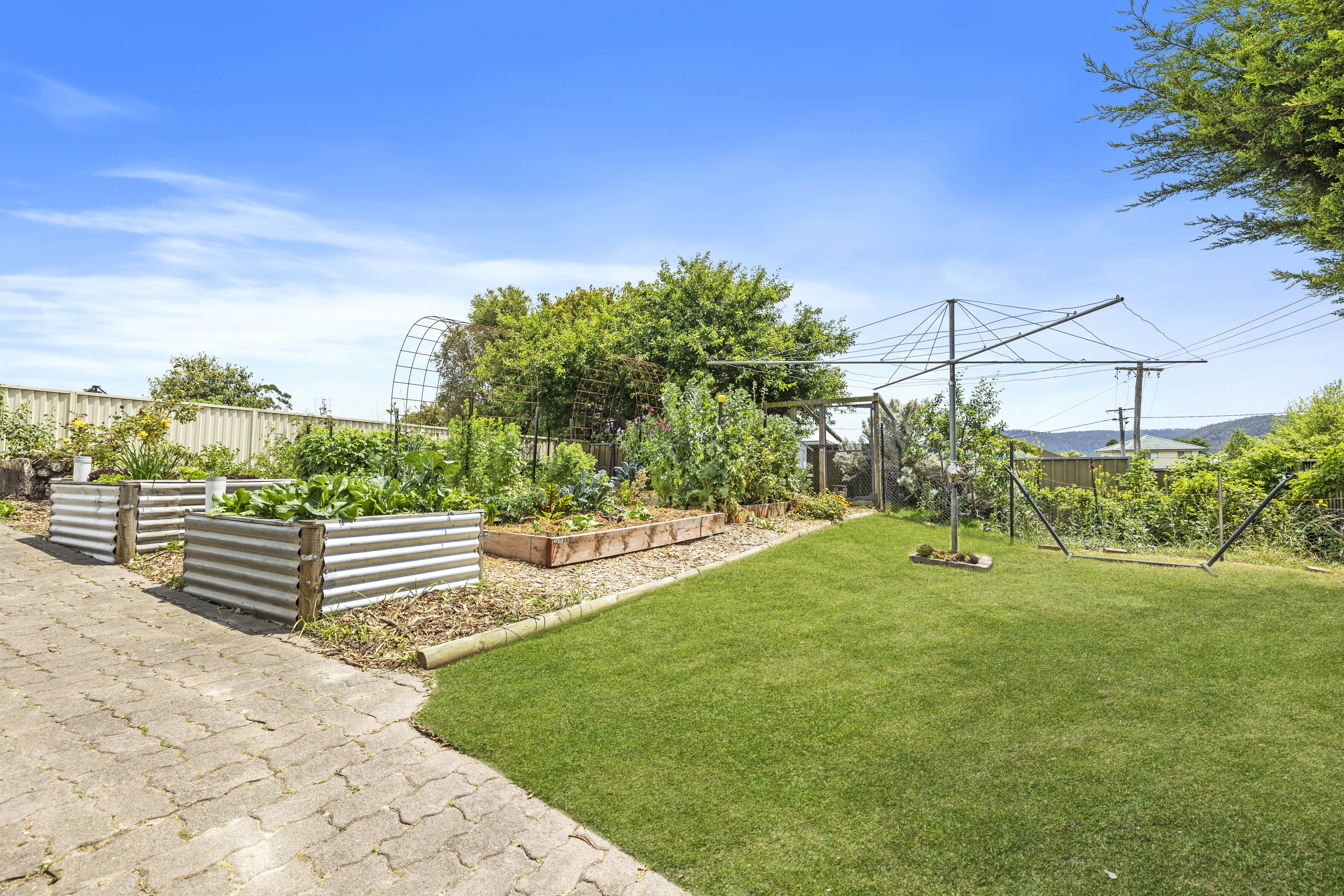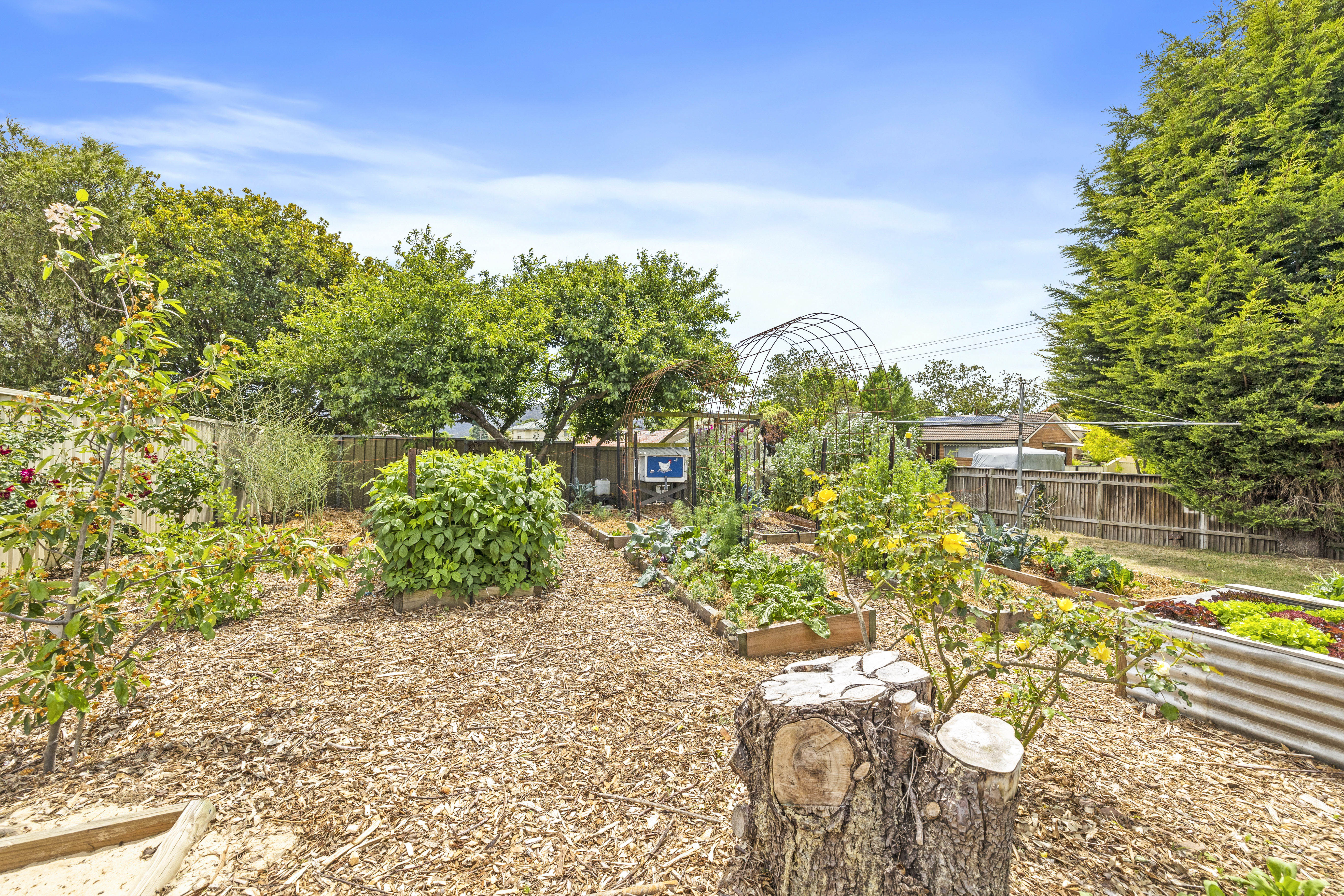 Outdoors, a true gardener’s delight awaits—an edible garden thoughtfully curated with a variety of fruit trees, vegetables, herbs and flowers that offers fresh produce year-round. Whether you’re a seasoned gardener or an aspiring one, this garden adds a sustainable, self-sufficient lifestyle element that’s hard to find. The property also includes a powered garage and separate laundry, rounding out its list of conveniences.