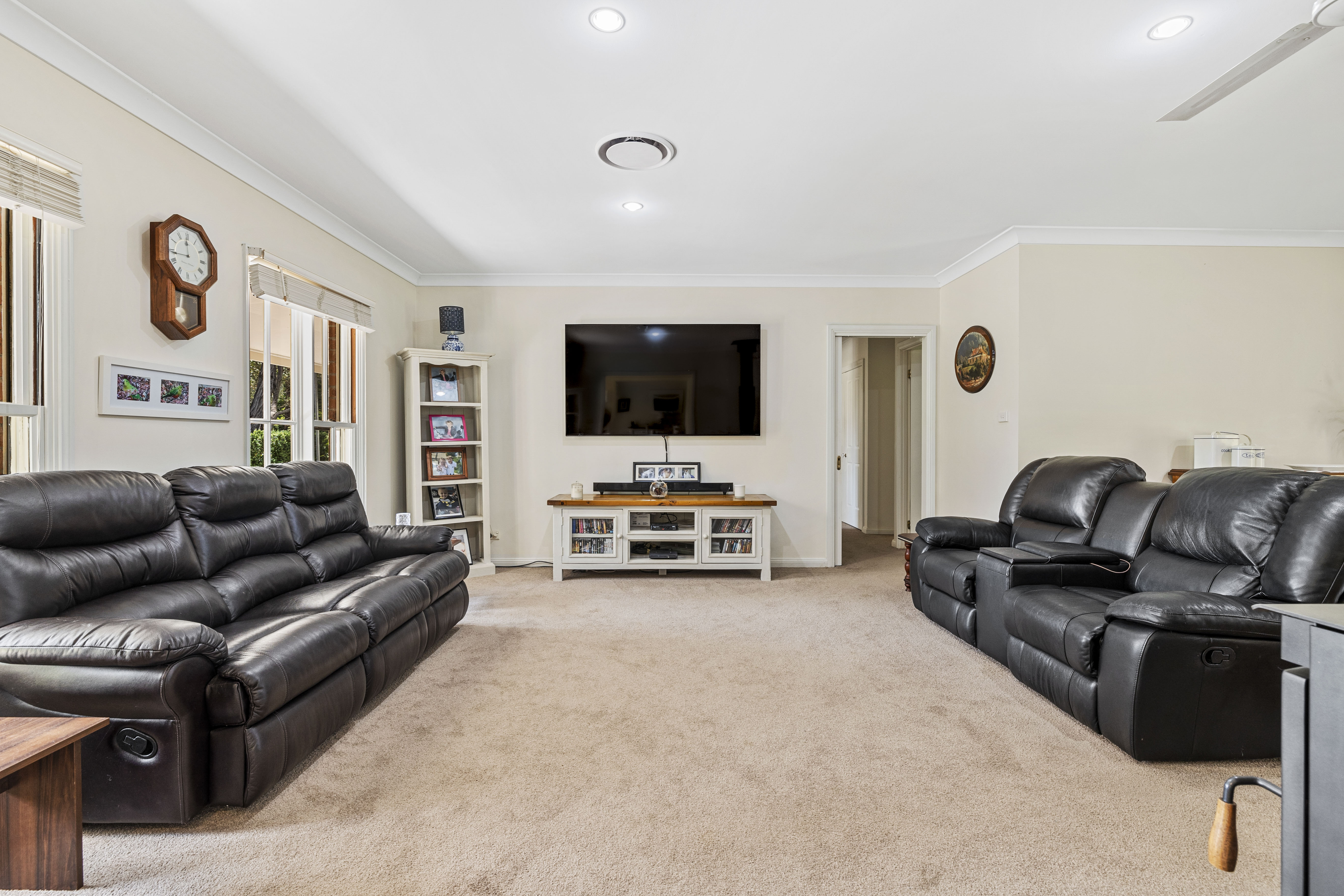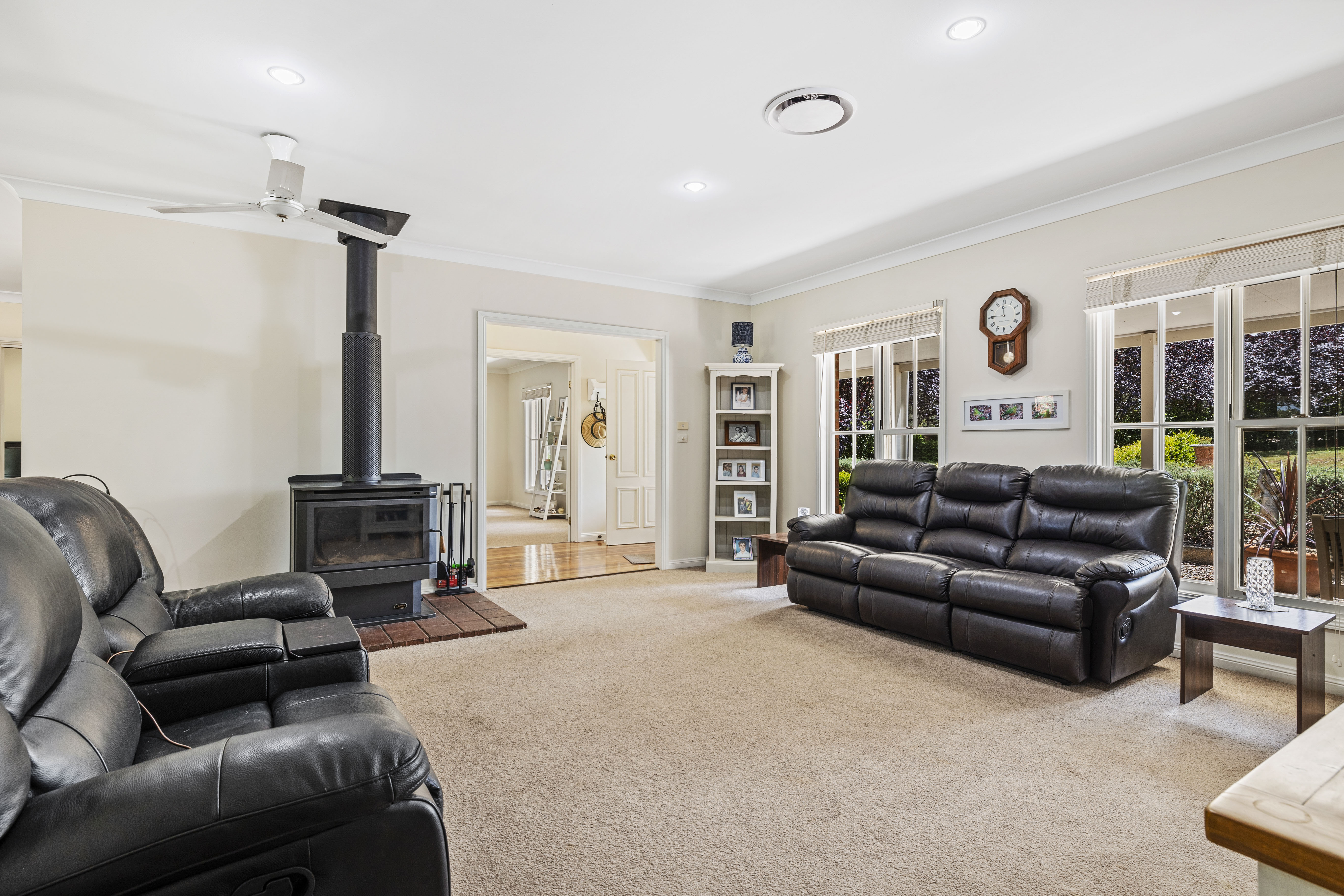 Step onto the wrap-around verandah and take in the fresh country air before entering a warm, inviting interior. Beautiful wooden floors lead you through to generously sized bedrooms, each featuring built-in wardrobes, ceiling fans, and panel heaters for ultimate comfort.