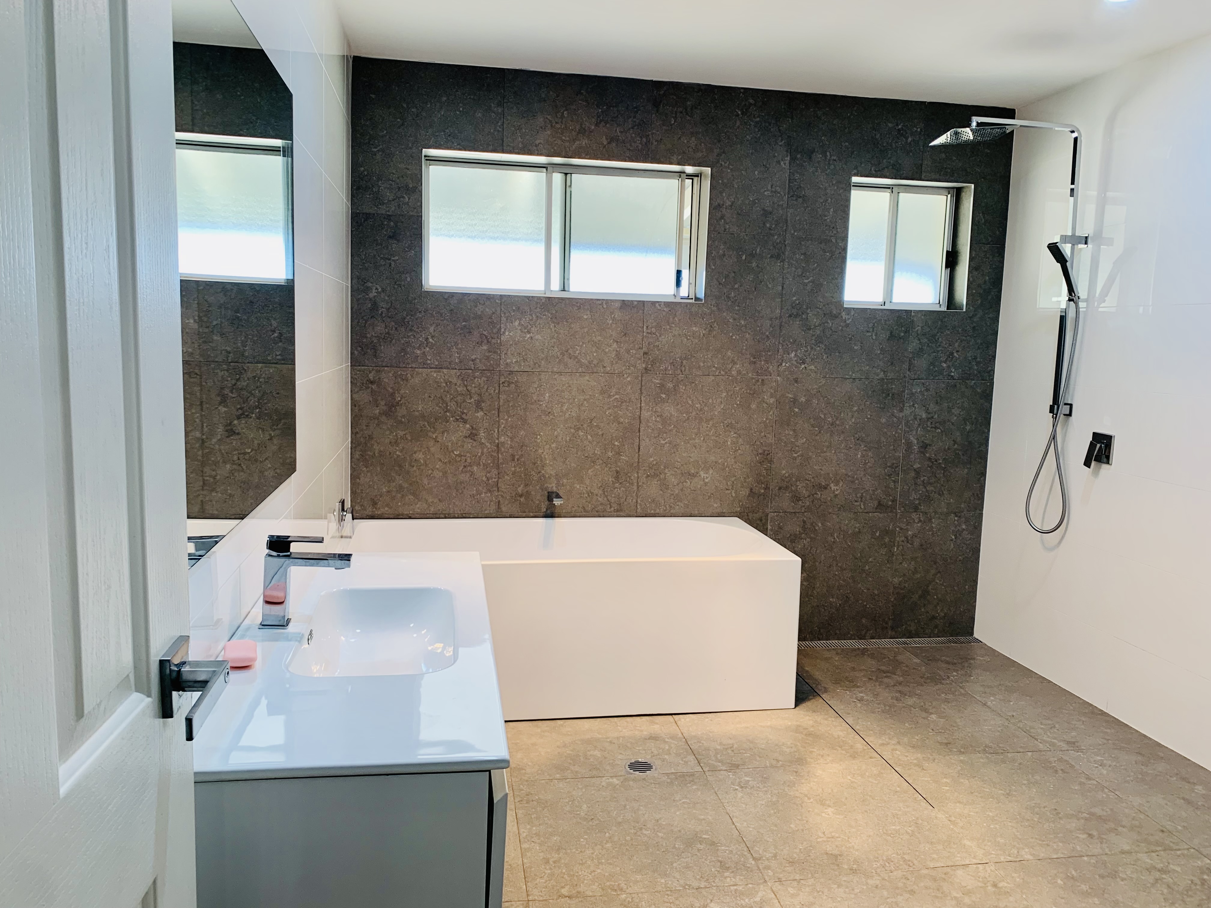 Spacious Modern Bathroom featuring separate bath and shower