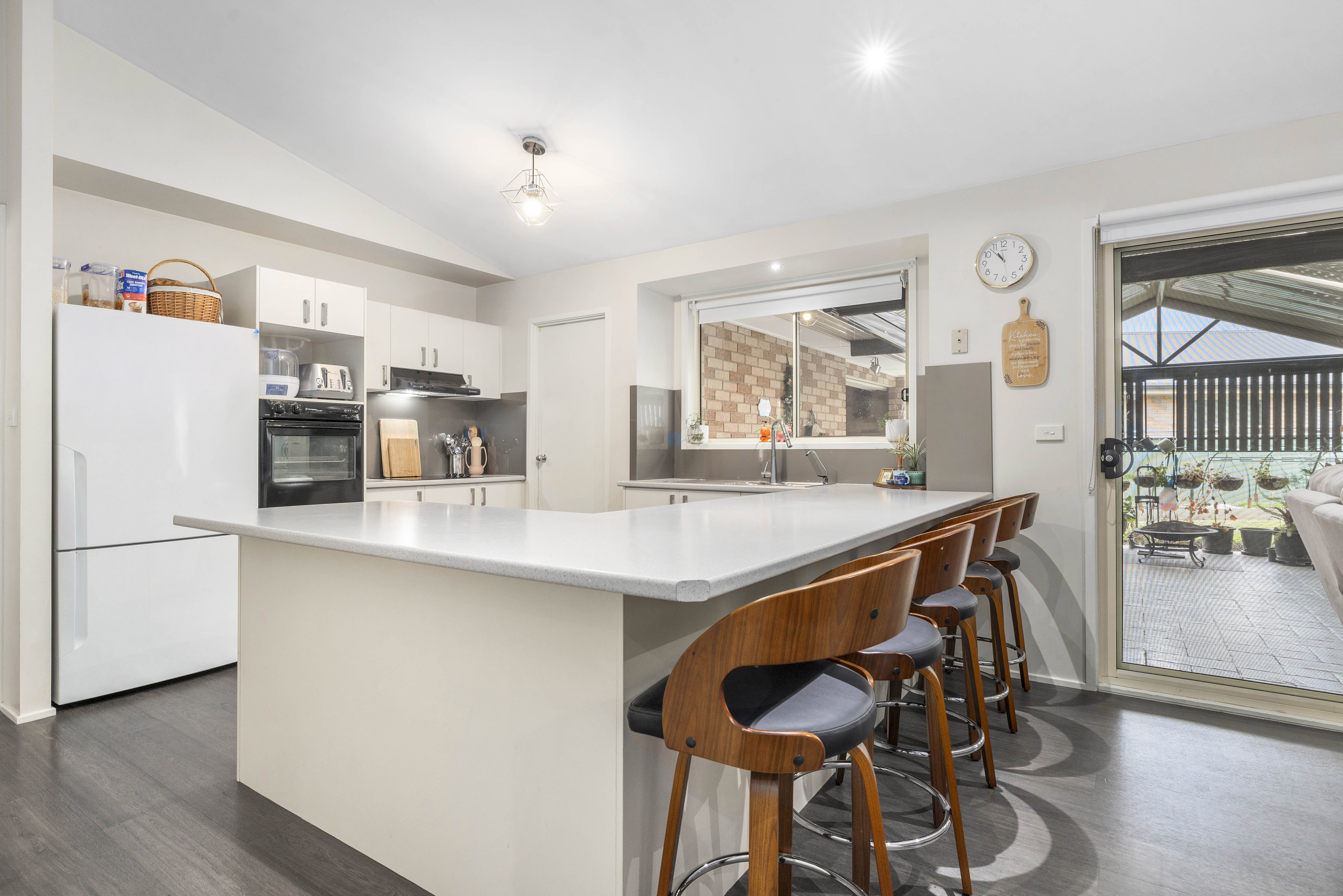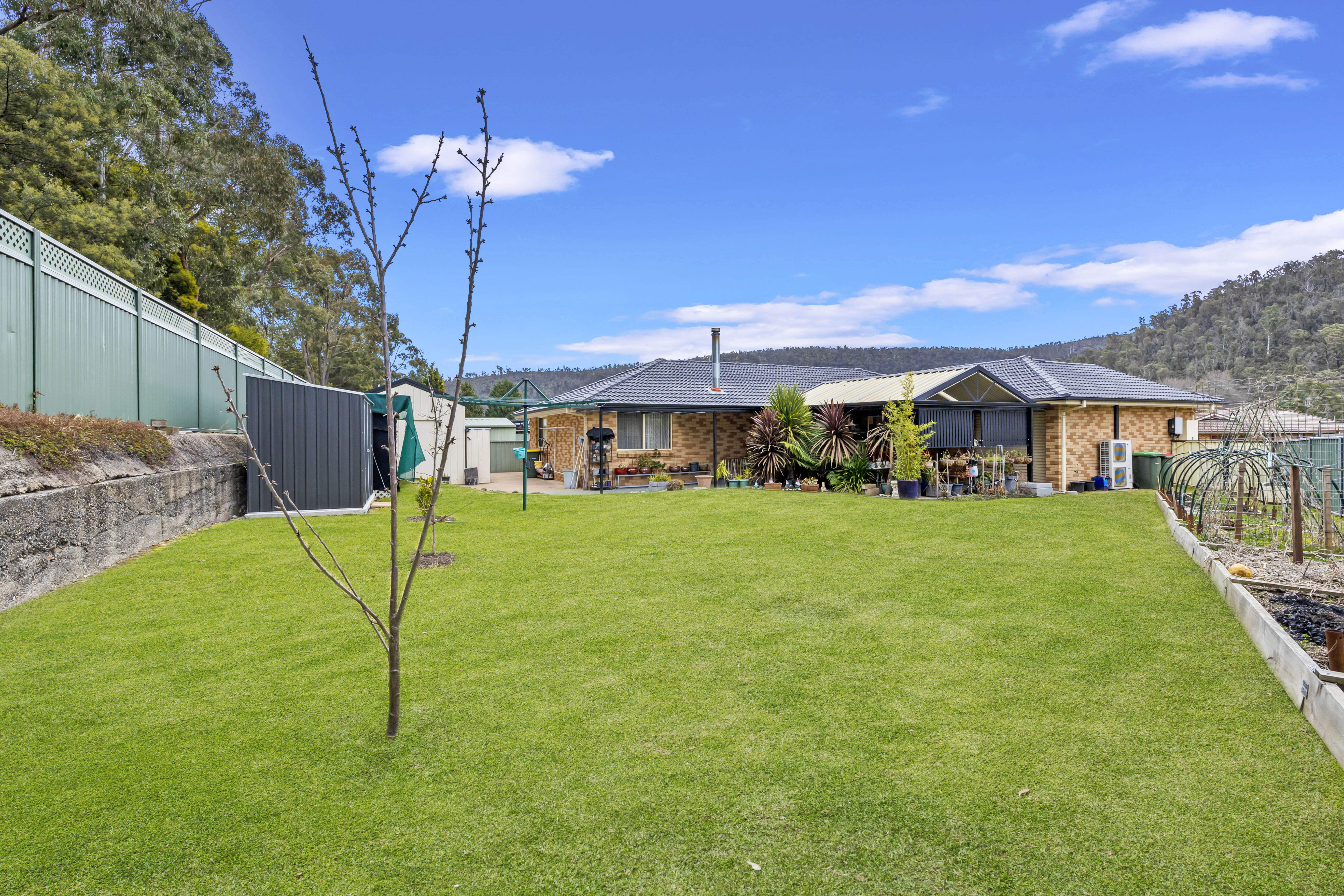 Step outside to a covered entertaining area and enjoy the level, fully fenced yard—complete with established veggie gardens, garden shed, and room to relax or play.