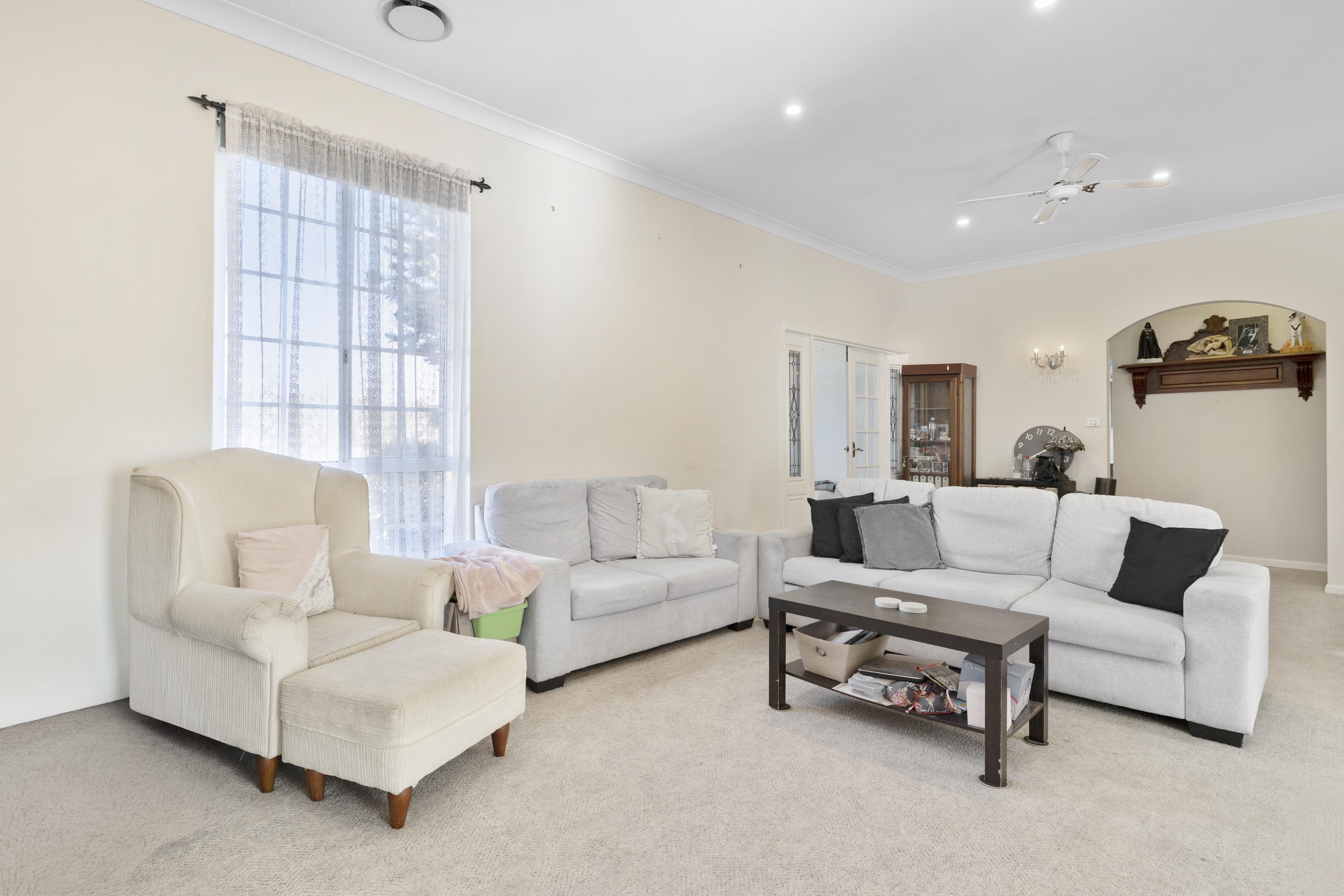 - Spacious lounge room perfect for family gatherings or quiet evenings by the fire