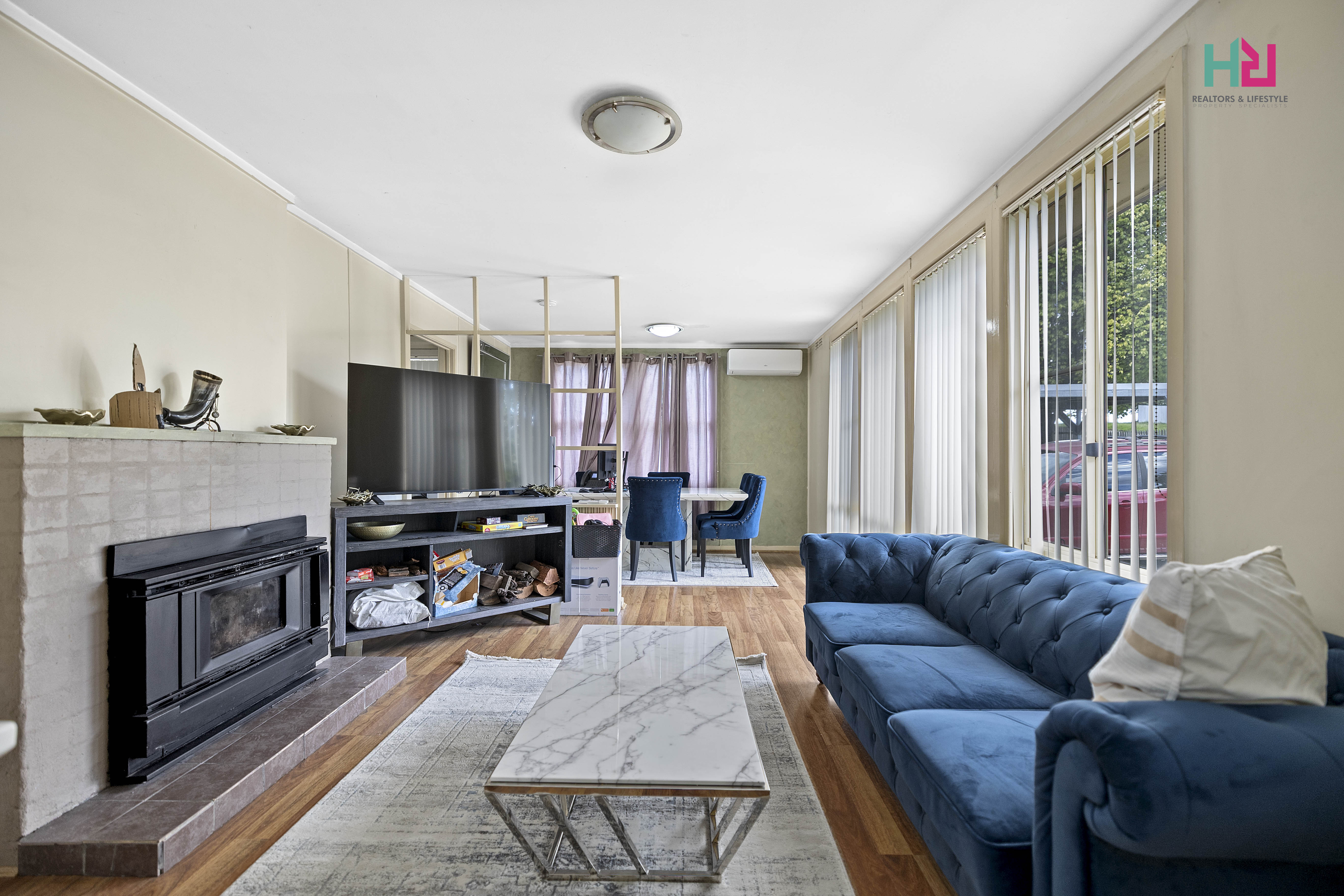 - Reverse‑cycle air conditioning plus a cosy wood burner for year‑round comfort