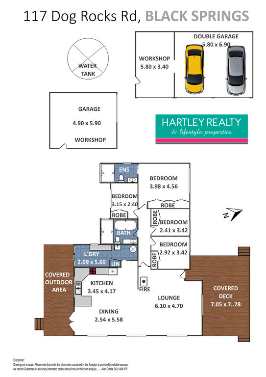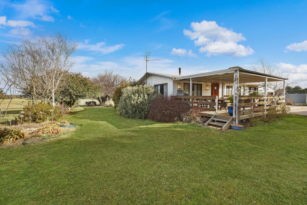 Established 4 bedroom, 2 bathroom cladded home with rear and front undercover decks set on a 4050sqm. house block. It further includes a 3 car garage/workshop, single garage, garden shed, chook shed & wood shed. There are lovely established irrigated gardens around the main home and the house block is fully fenced.