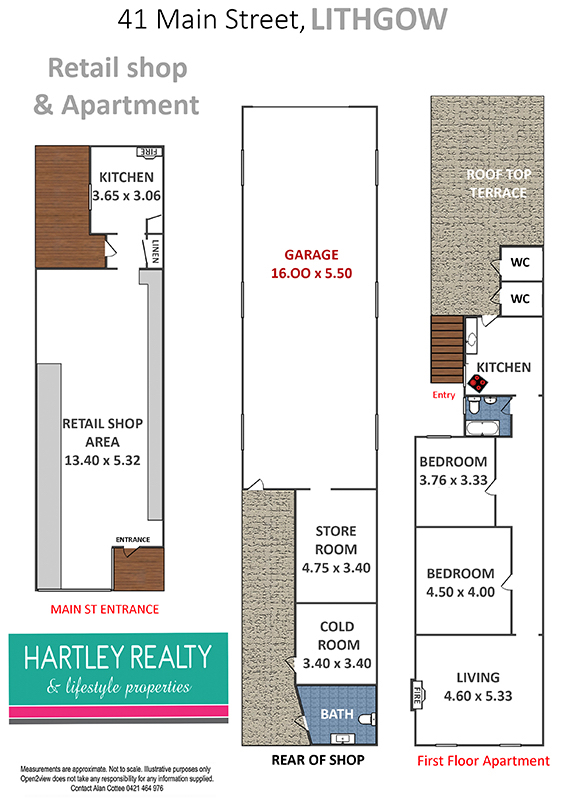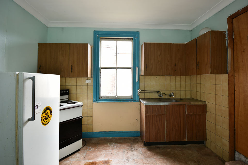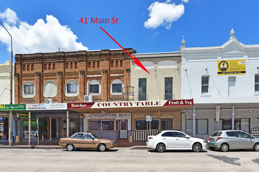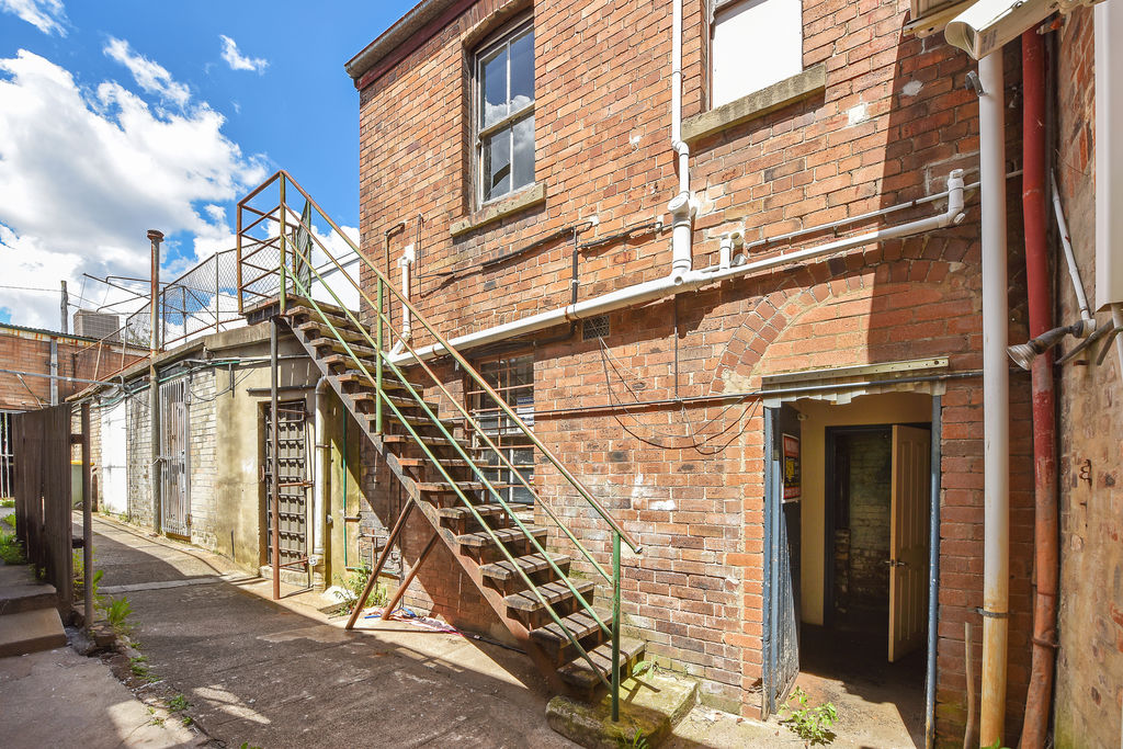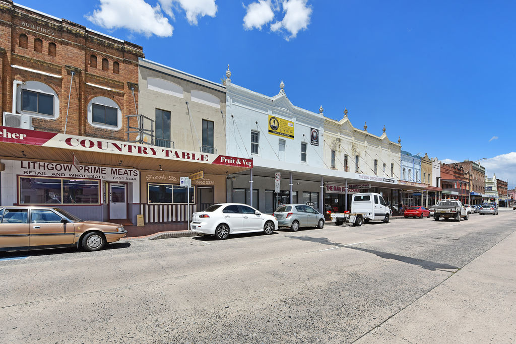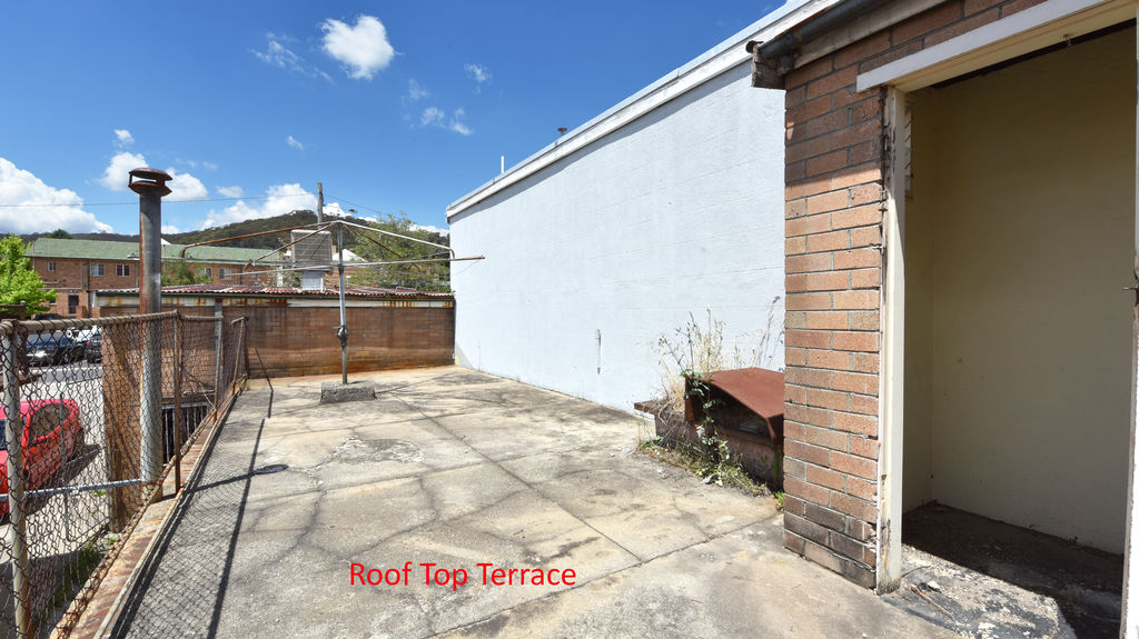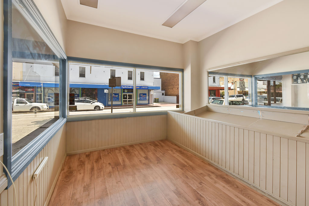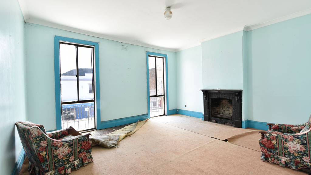 The building also hosts a generous 2 bedroom terrace above it in need of renovation it has a quaint kitchen and bathroom spaces, and a large living room with a wood fired heater looking out over Lithgow's Main Street.