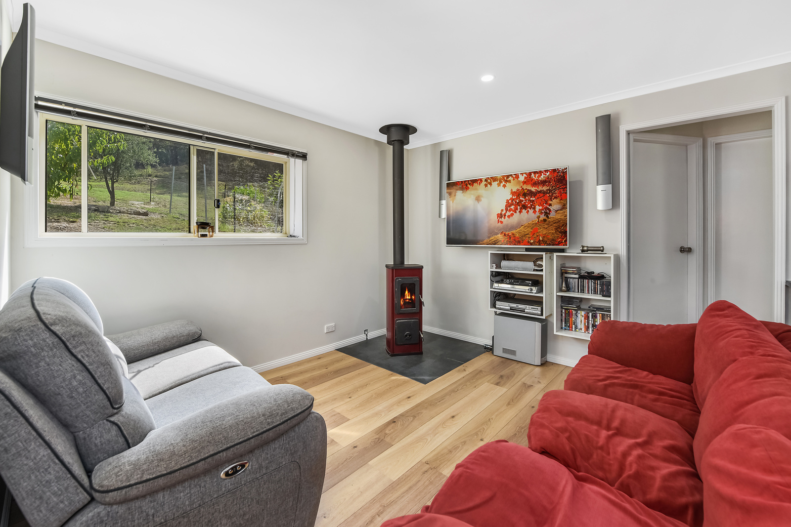 The shed-based weekender is perfect in all seasons, keeping warm with a slow combustion heater in the cooler months, and relatively cooler during warmer weather, there is an outdoor area for relaxing too! Have a BBQ and watch the sun go down of an afternoon. Lock it up with the two roller doors covering the entries when you go away.