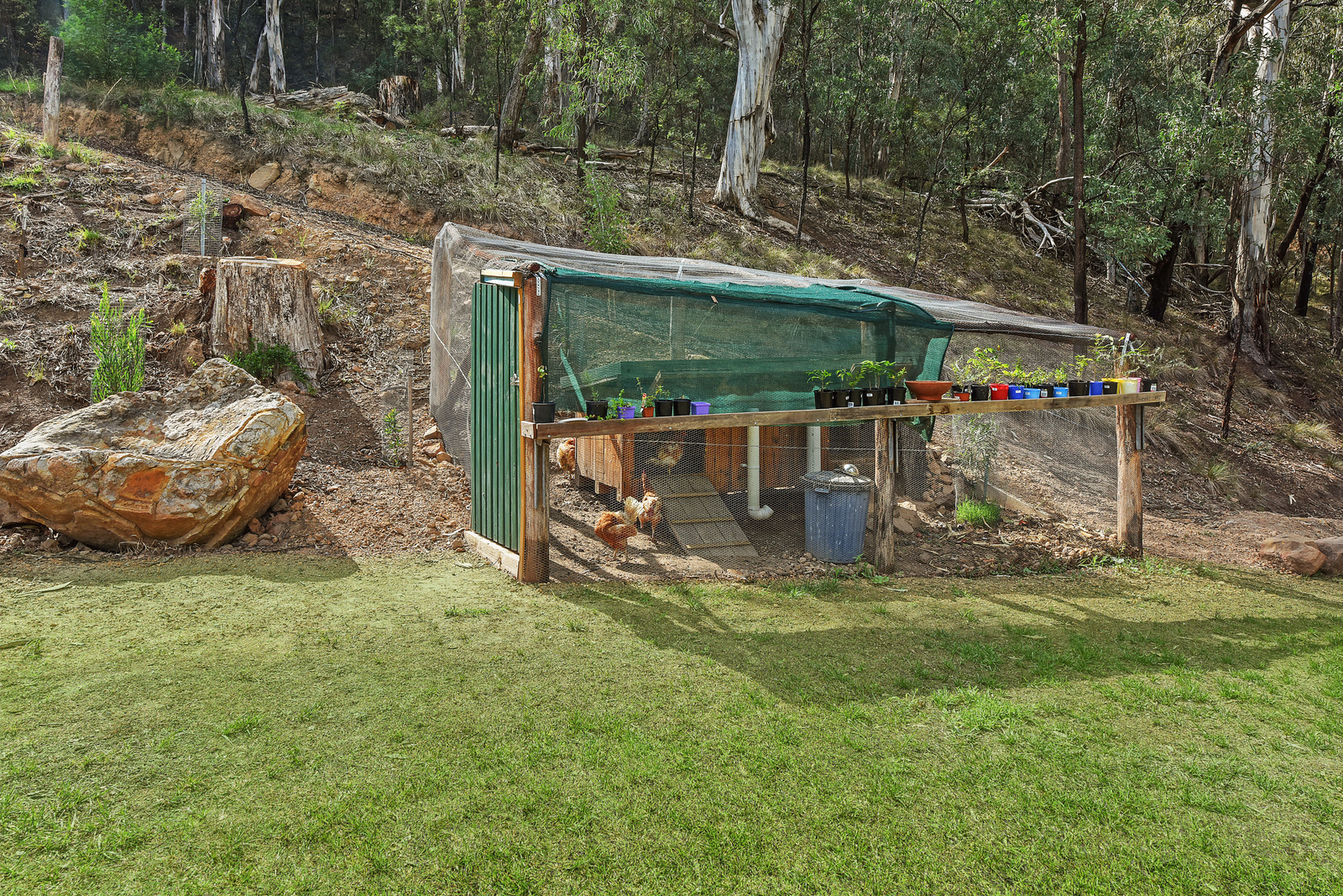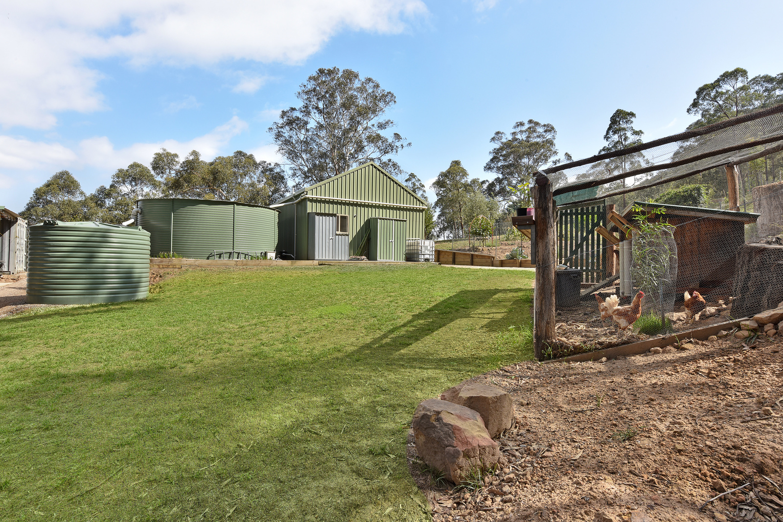 The property can be relatively self-sufficient, with established veggie patches, and various fruit trees. Don't go short of water with approximately 59,000L capacity combined overall, and a Ecomax septic system. Poultry are well considered, with a chicken coop, the property is also fenced for pets to roam freely. You can even build your dream home while living in the weekender.