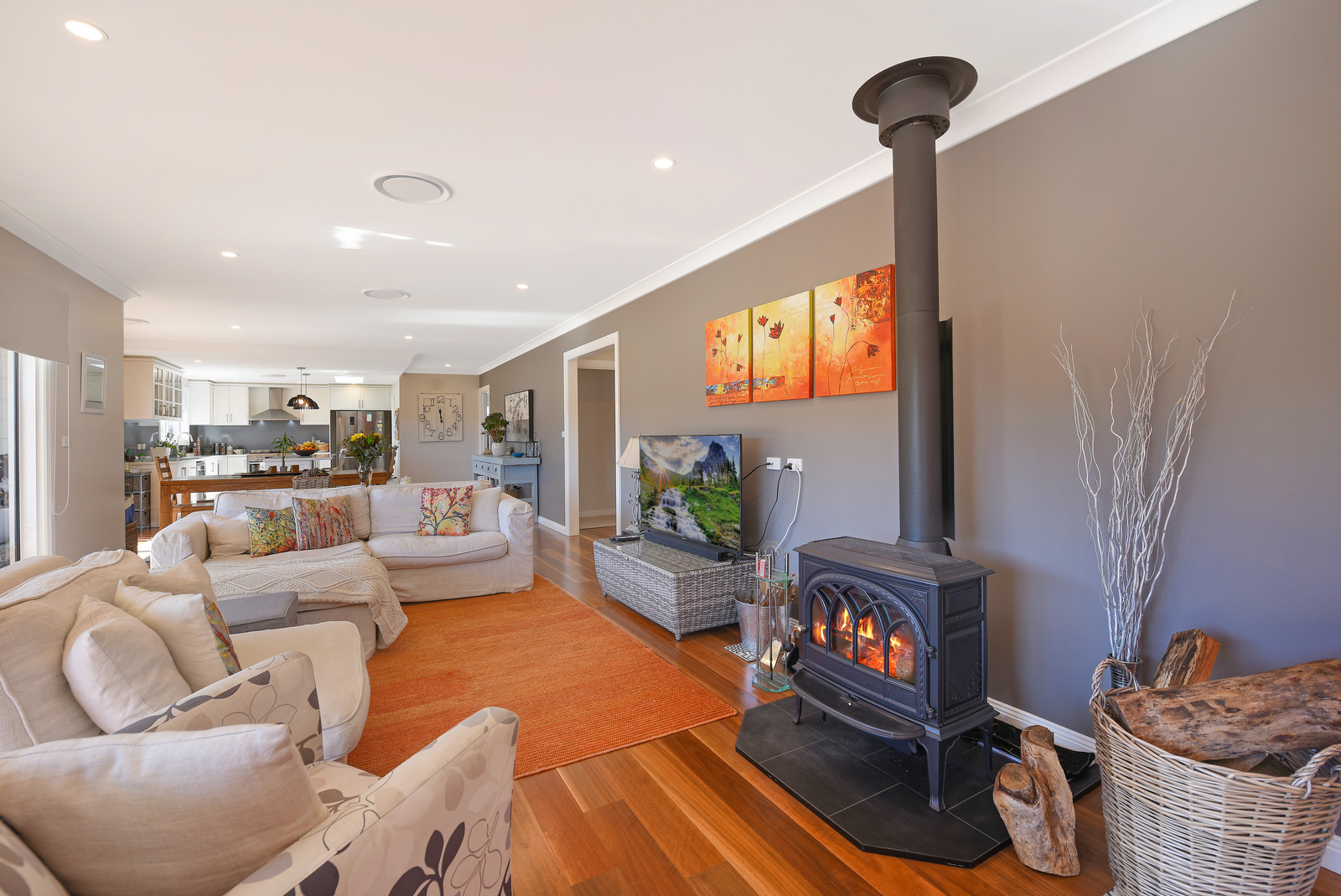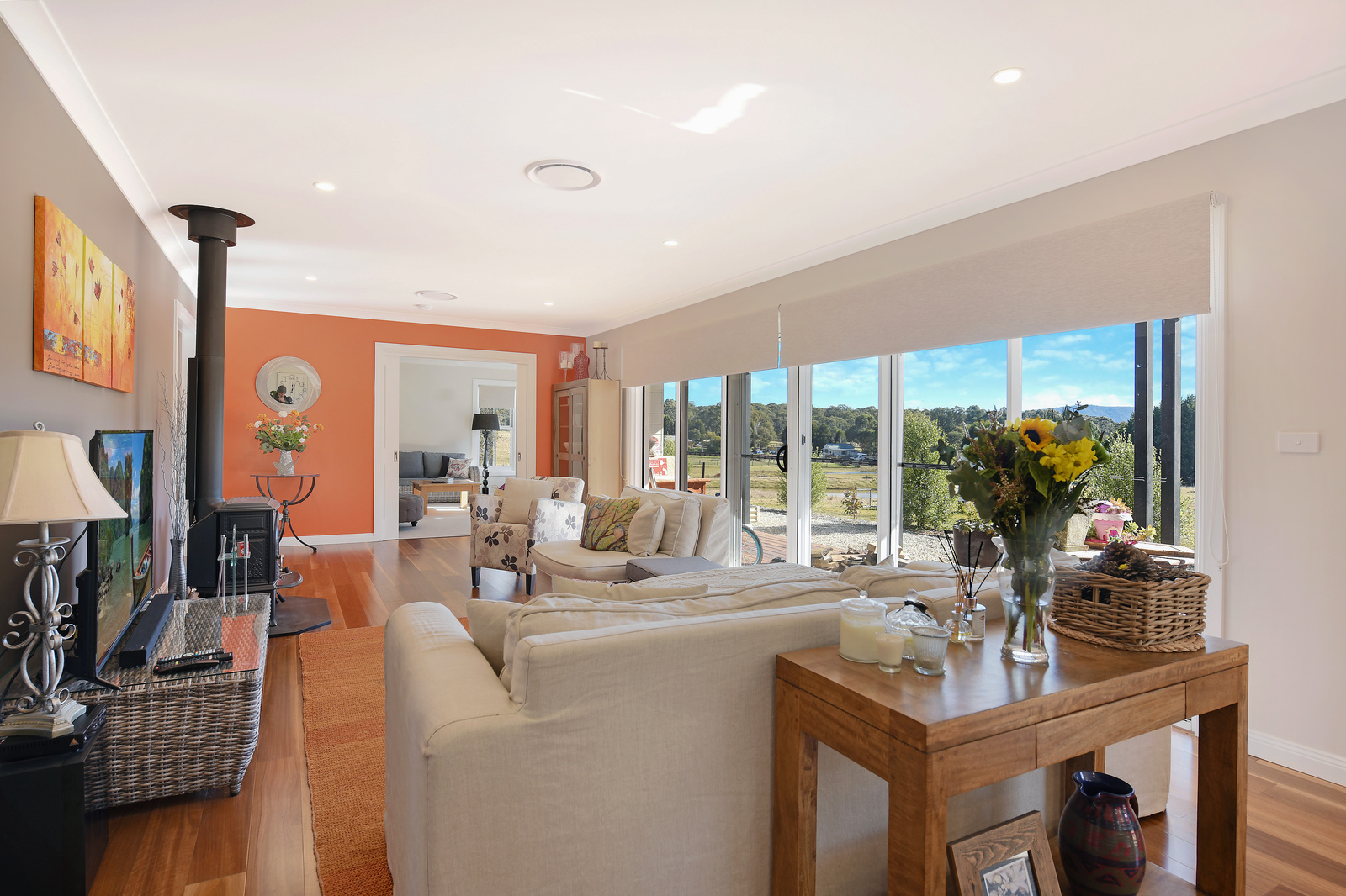 Ducted reverse cycle aircon throughout and a combustion heater for that special feeling when the weather pushes for indoor time with a glass of red.