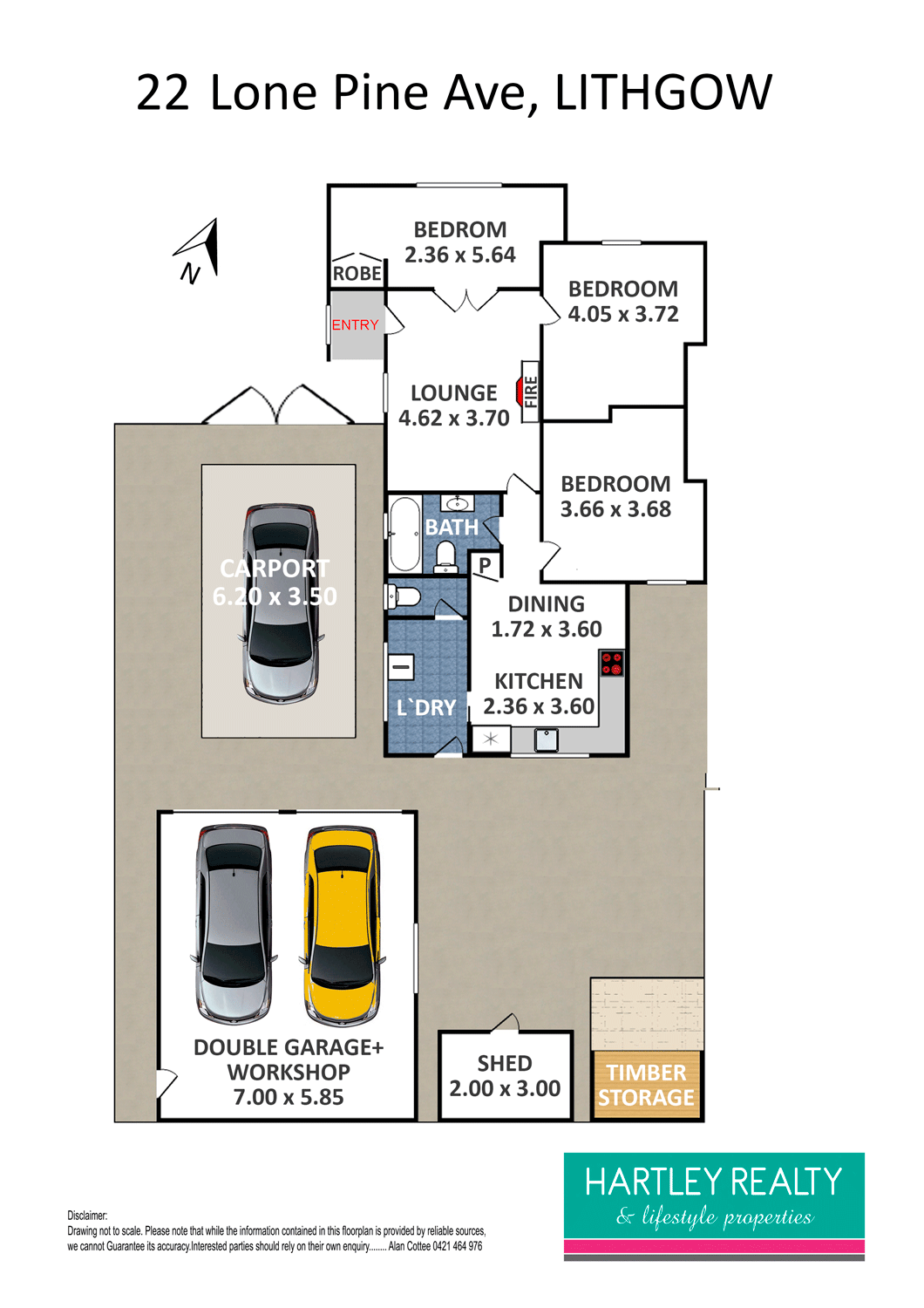 The front entry opens onto the lounge room that has new tiles, a reverse cycle air conditioning unit, and a wood burner.