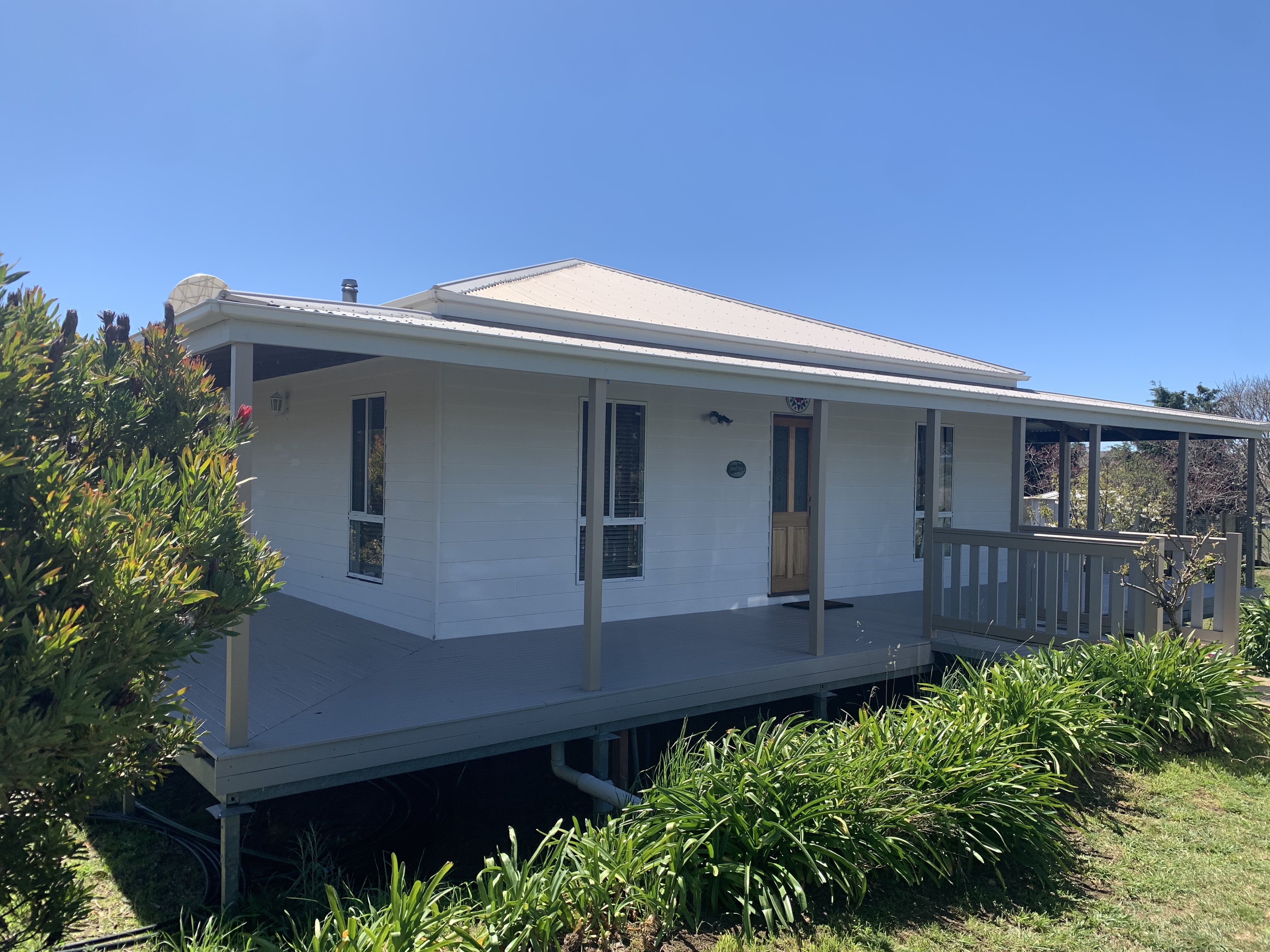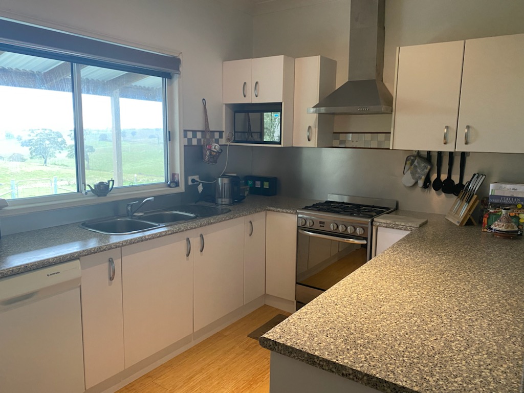 The 4 bedroom plus ensuite home is in an elevated position to take in the huge views over the surrounding rural properties. It is a well-built and designed Hardi-plank home on piers with a wraparound veranda.