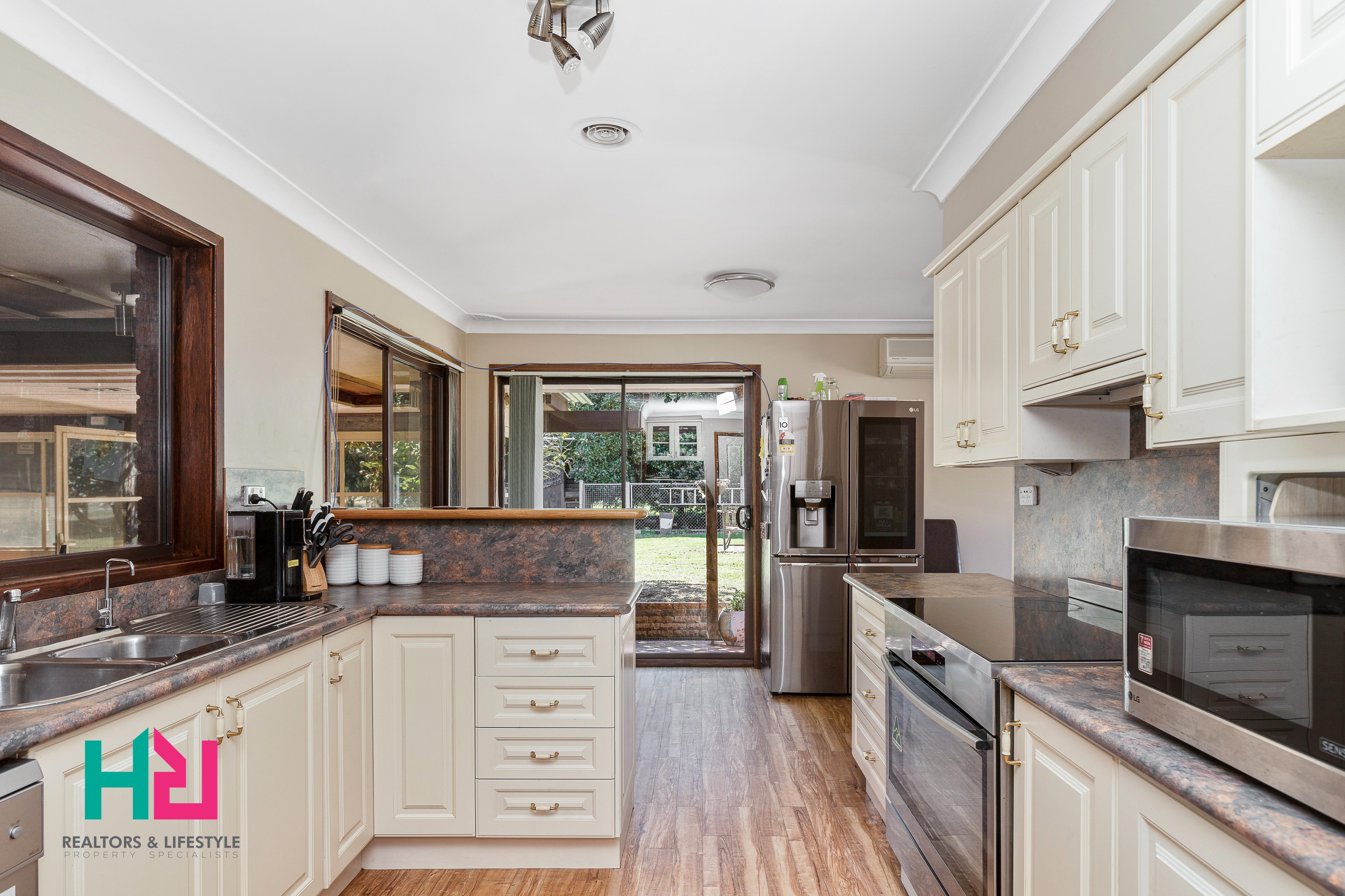 The single-level double brick home boasts a flexible floor plan that includes a great kitchen overlooking the living and dining area. There's plenty of space for the whole family, with five bedrooms, built-in robes and two functional bathrooms with a freestanding bath, shower and separate toilet areas.