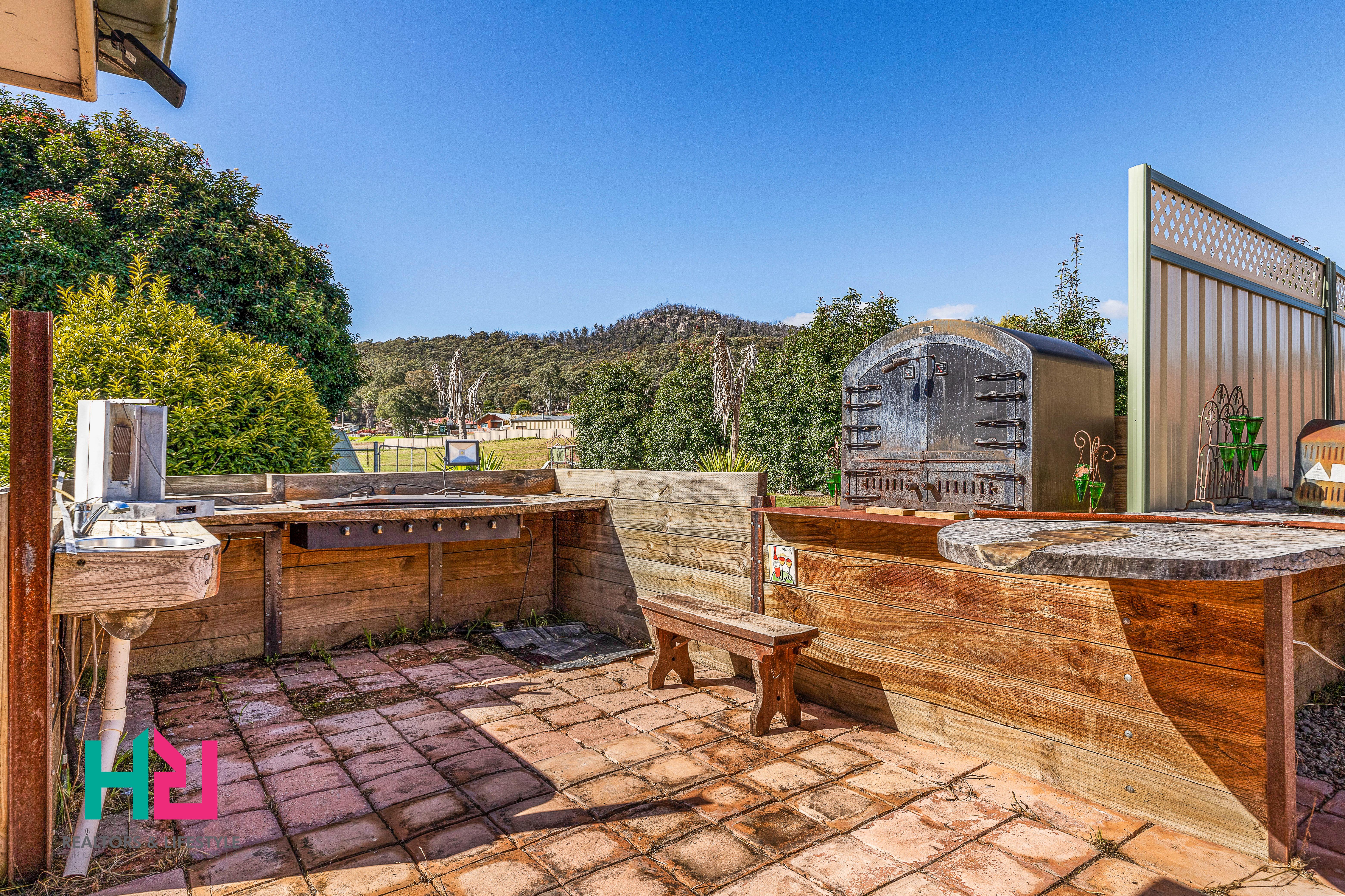 • The entertaining outdoor area includes a wood fire pizza