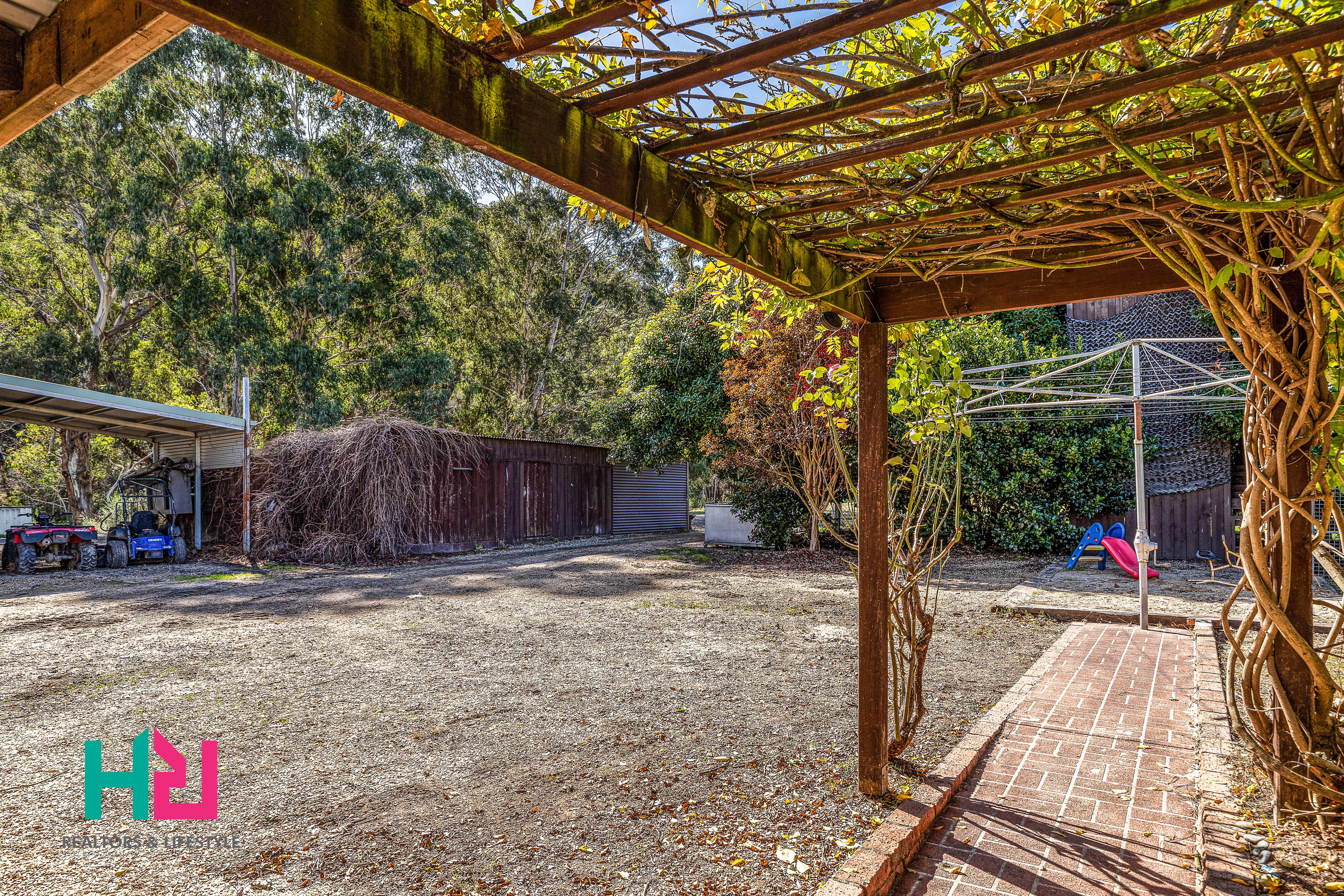 • 30 x 10m dog enclosure with tree and 3 level cubby house inside